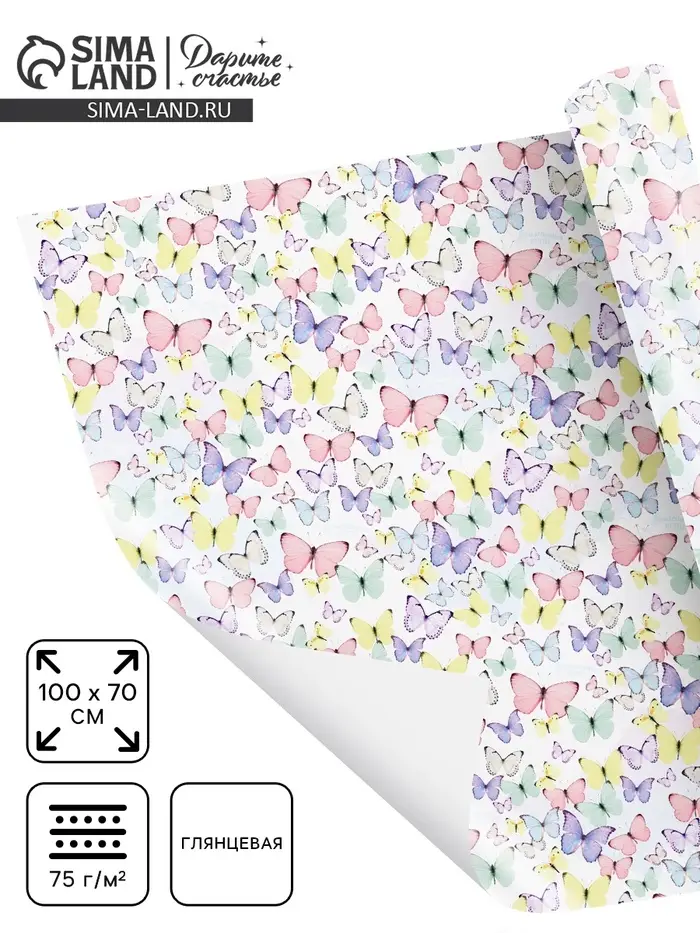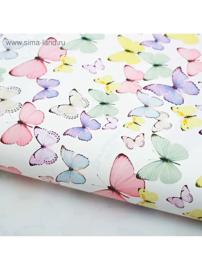 Бумага упаковочная глянцевая «Светлые бабочки», 70 х 100 см