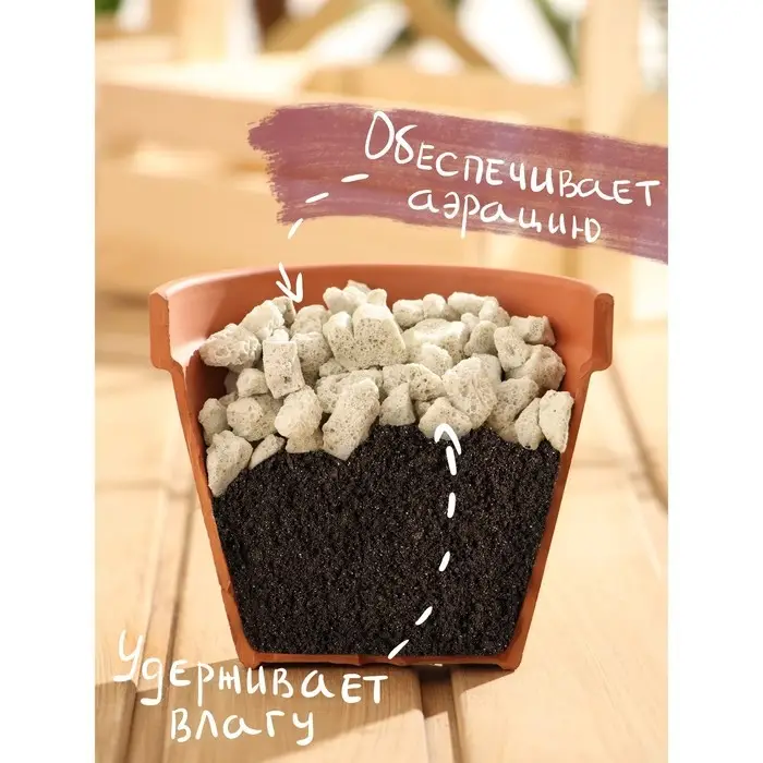 Стимулирующий субстрат обогащает растения монокремниевой кислотой, улучшает структуру грунта, сокращает количество поливов, обеспечивает отличную аэрацию.