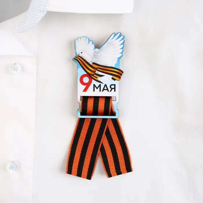 Значок на 9 мая с георгиевской лентой выполнена из очень качественного, плотного материала. Все детали на Георгиевской ленте выполнены аккуратно, смотрятся потрясающе. В период Великой Отечественной войны полоски на ленте воспринимали как цвета пороха и огня. Но во все времена этот символ ассоциировался с мужеством, героизмом и победой. Каждый год 9 мая мы крепим Георгиевские ленточки, чтобы проявить уважение к воинам и показать, что память об их подвиге жива. Носите Георгиевскую ленту всей семьей на праздничные шествия и мероприятия в честь 9 Мая.