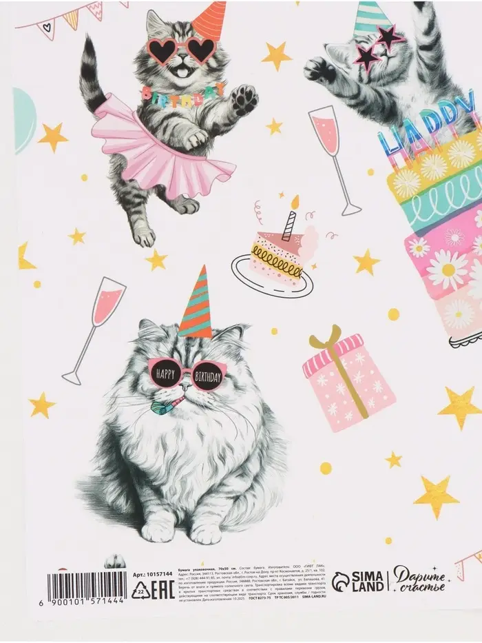 Бумага упаковочная «С днём рождения», глянец, 70×100 см, 1 лист