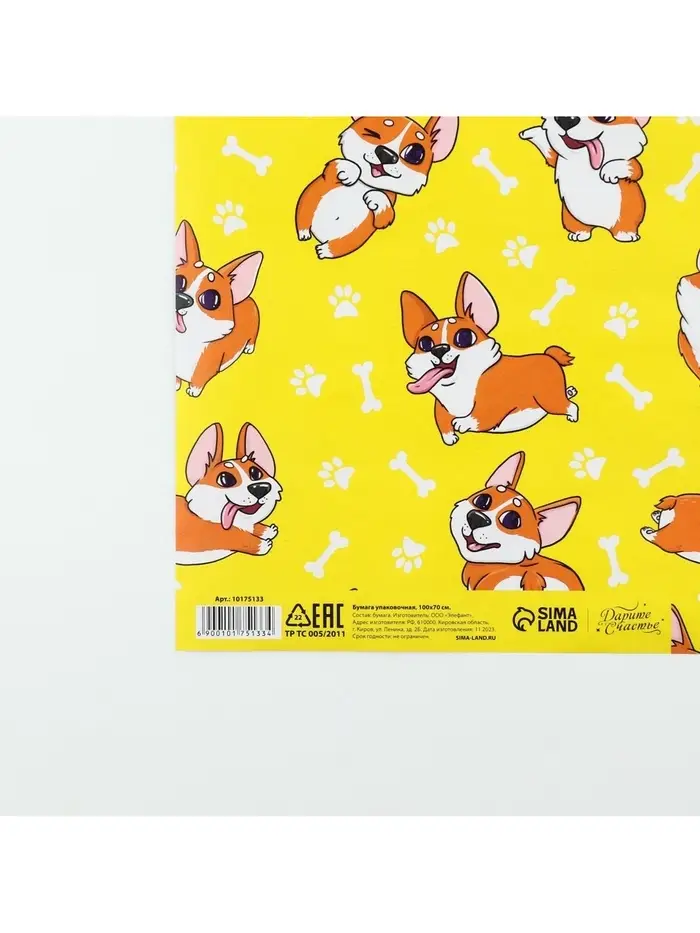 Бумага упаковочная глянцевая «Корги», 70 х 100 см