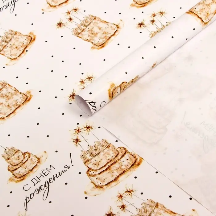 Бумага упаковочная глянцевая «Тортики», 100×70 см