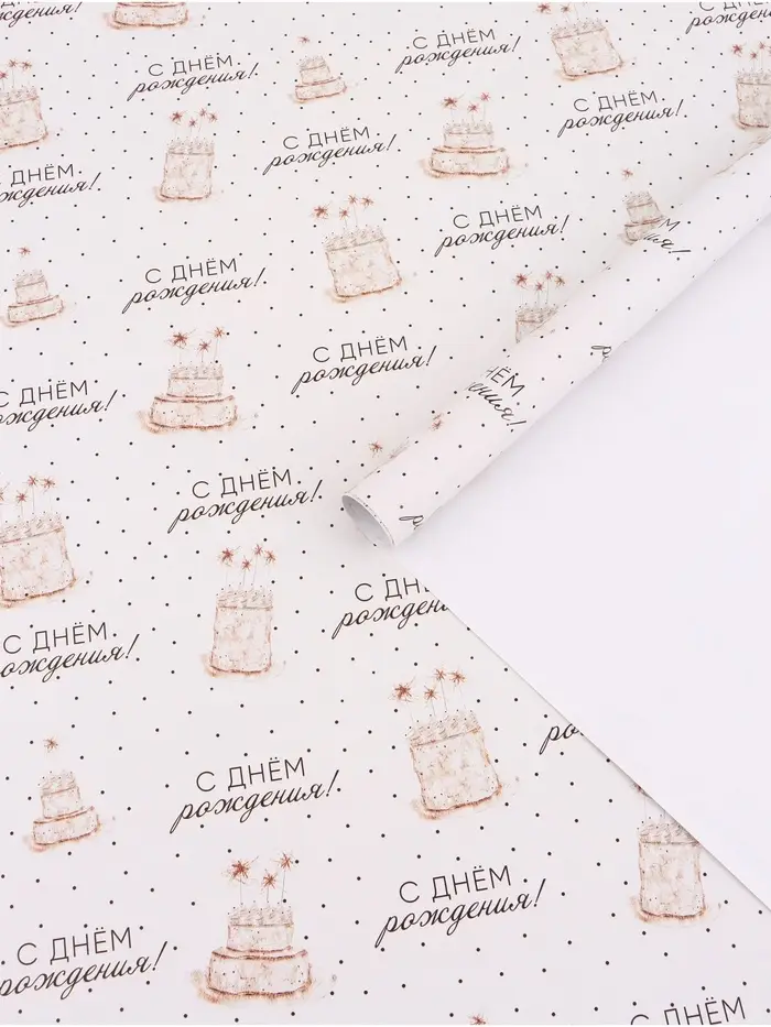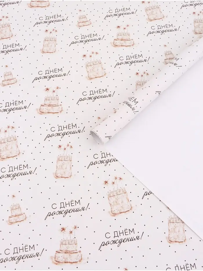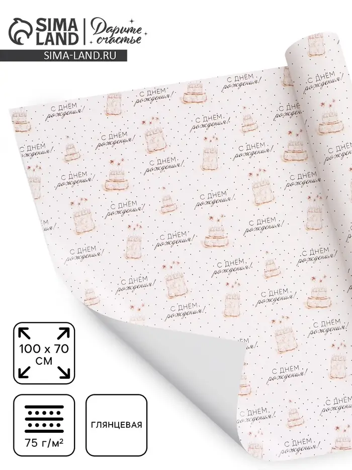 Бумага упаковочная «С днём рождения», глянец, 70×100 см, 1 лист