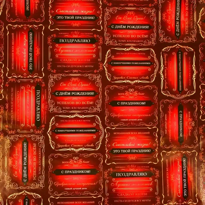 Бумага упаковочная, глянцевая "С Днем Рождения", 70 х 100 см, 1 лист