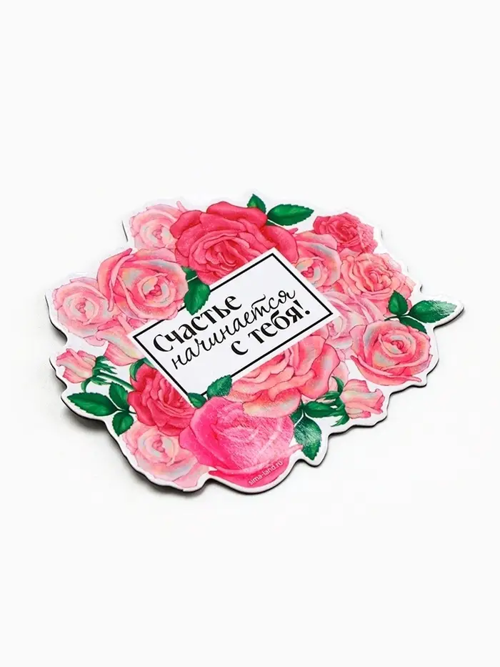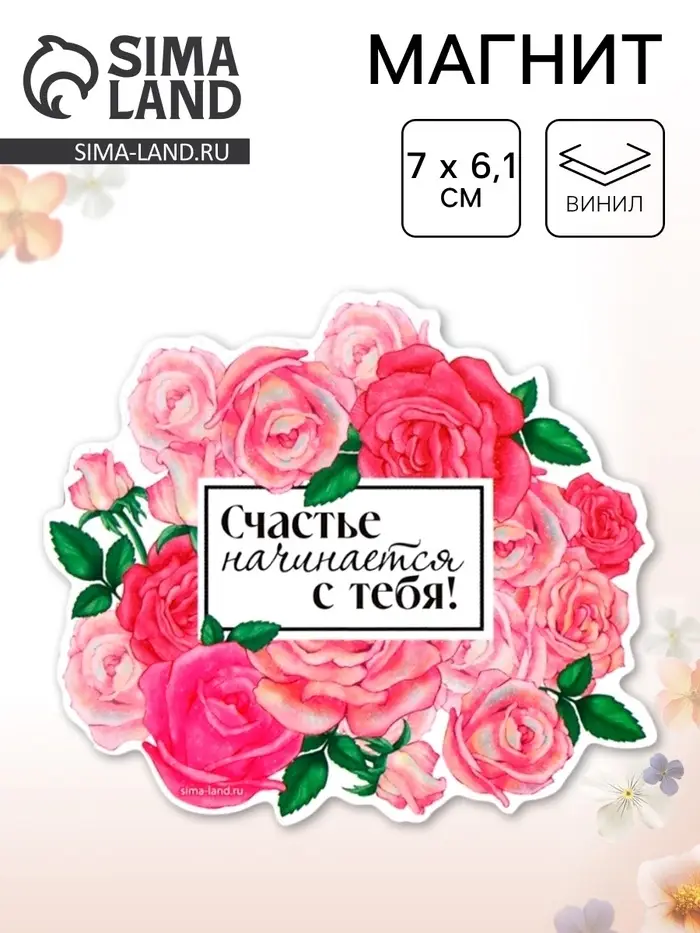 Магнит полимерный на 8 Марта, «Счастье начинается с тебя», 7×6.1 см