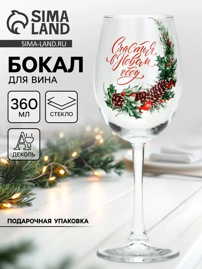 Бокал для вина новогодний «Счастья в Новом году», 360 мл