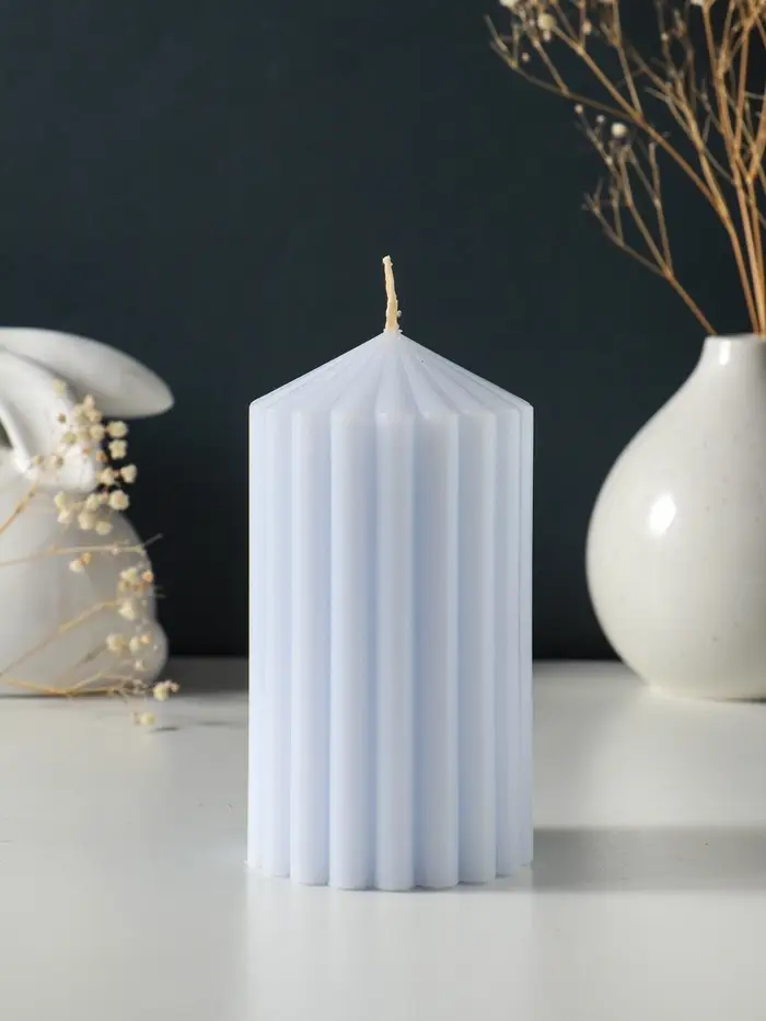 Свеча-цилиндр 7х14 см, 370 гр, рифлёная, лаванда