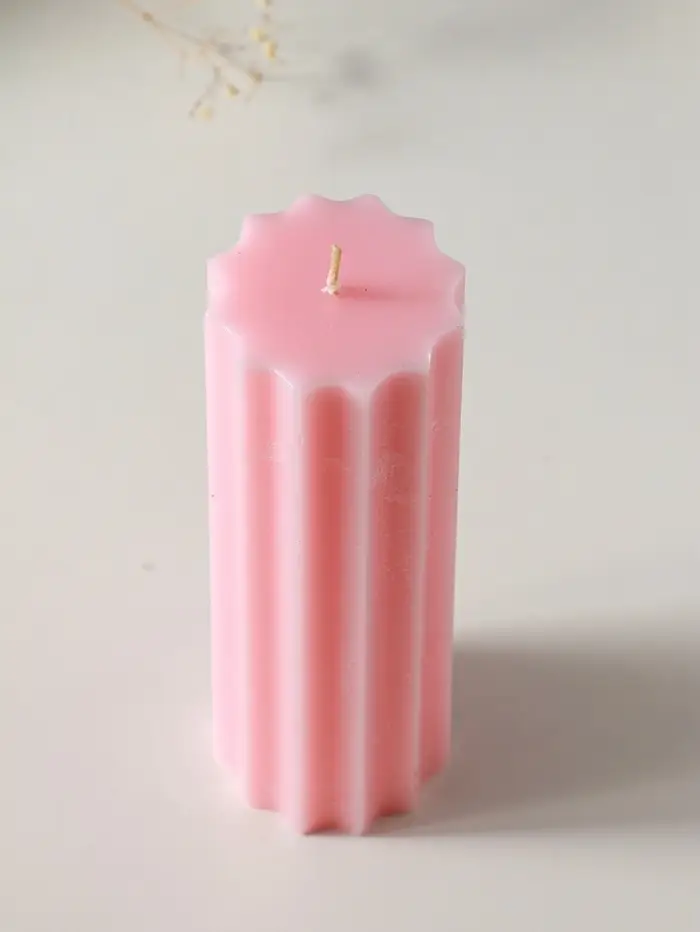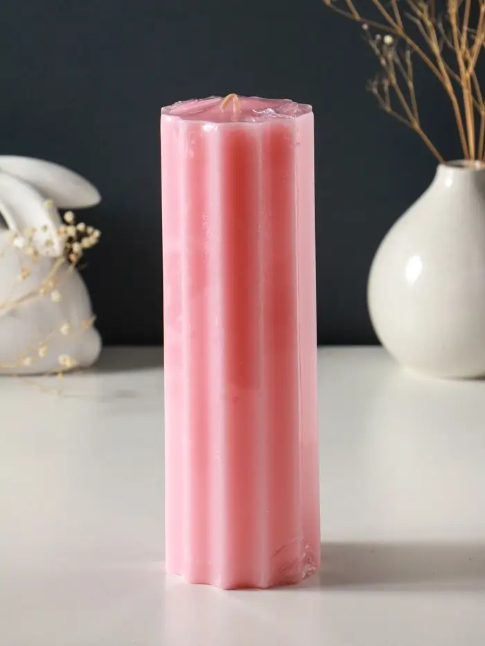 Свеча-цилиндр 7х20 см, 600 гр, с крупными гранями, розовый