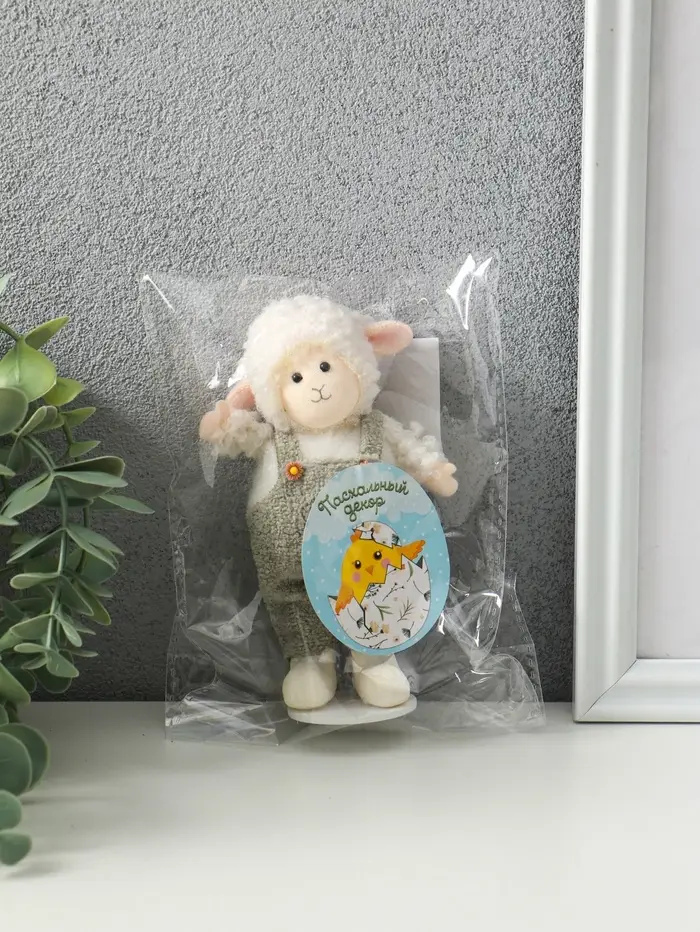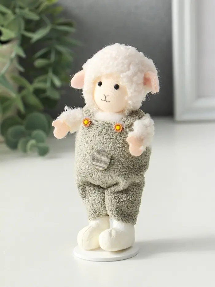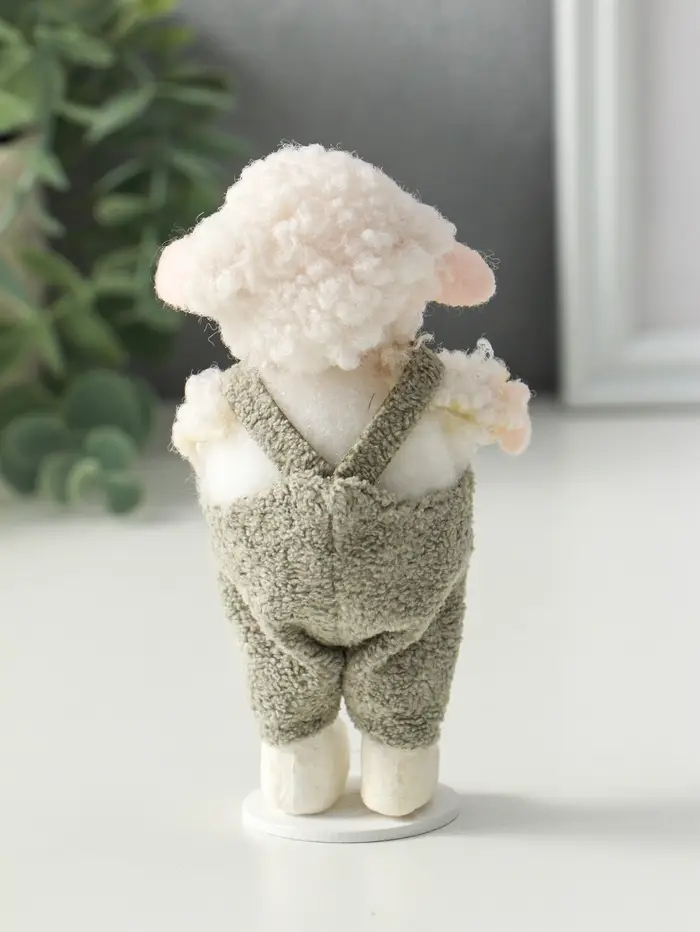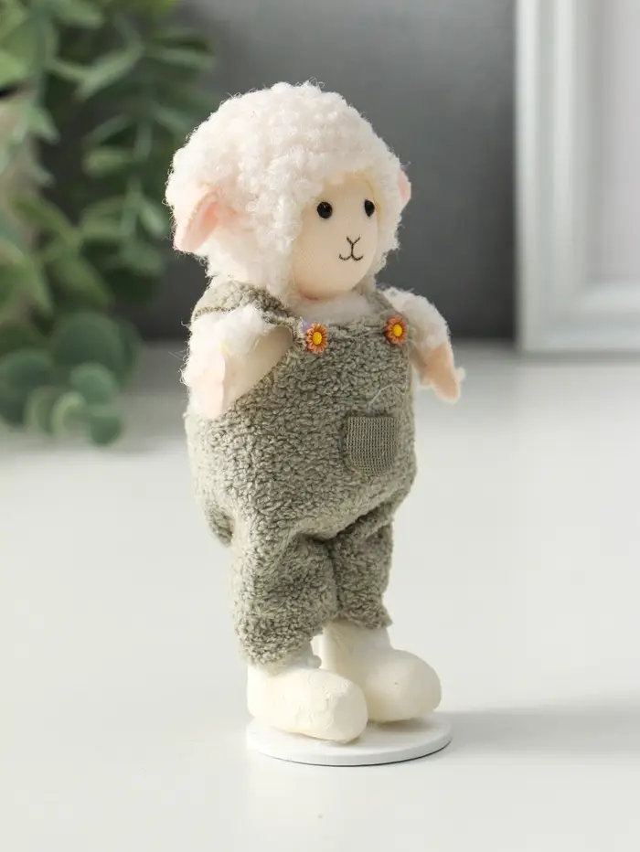 Сувенир "Белый барашек в зелёно-сером комбинезоне" 4х6,5х13 см