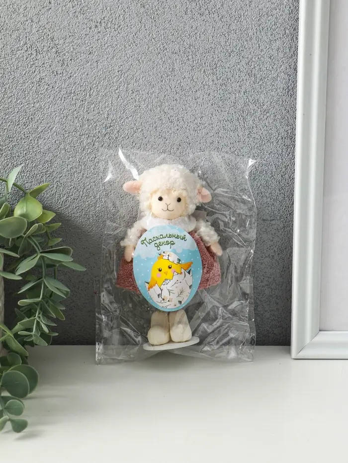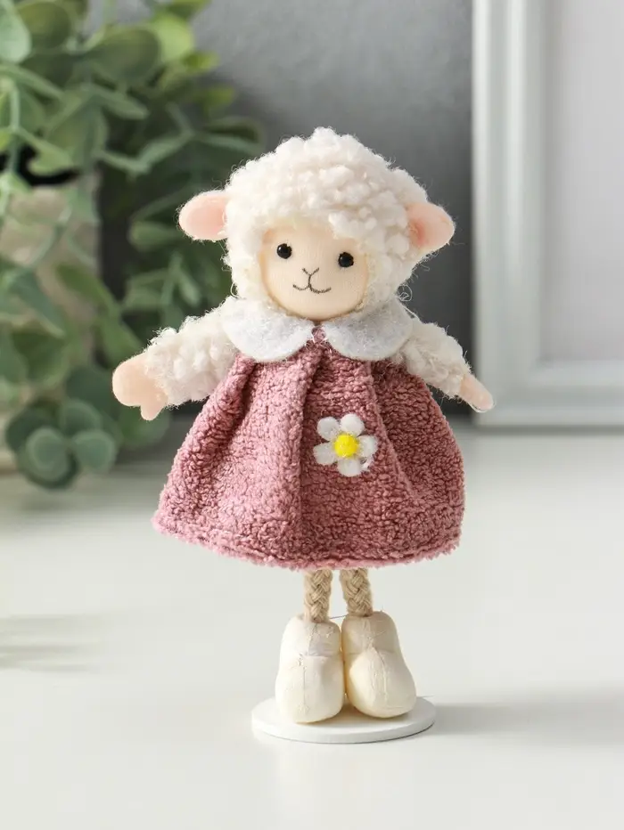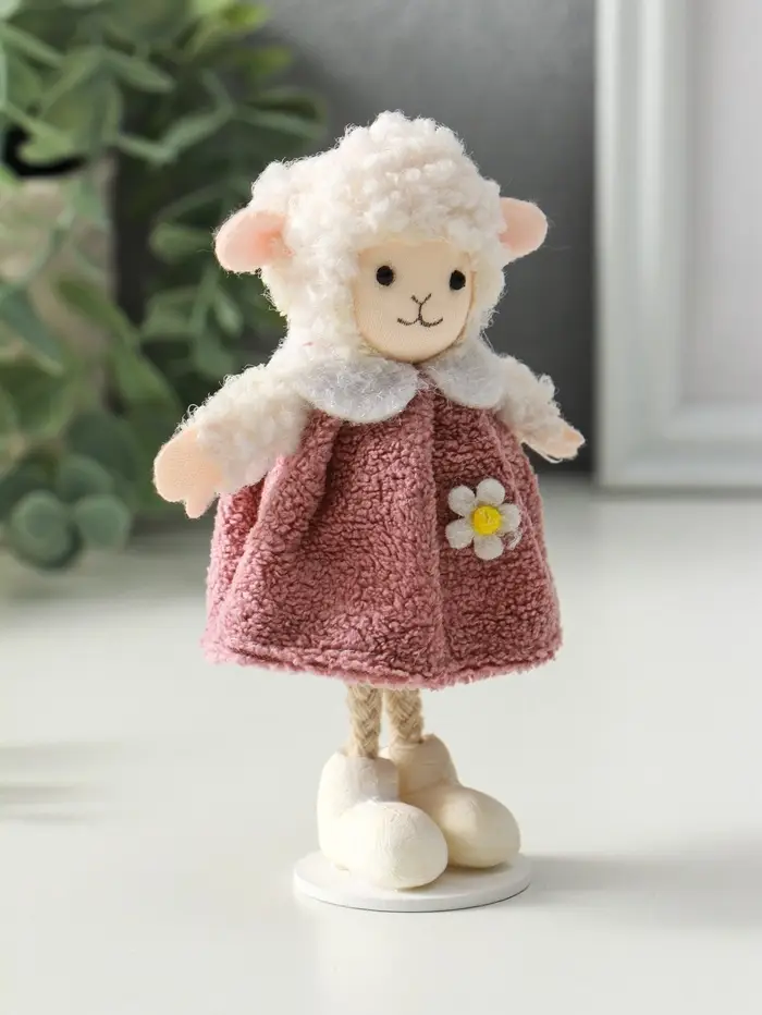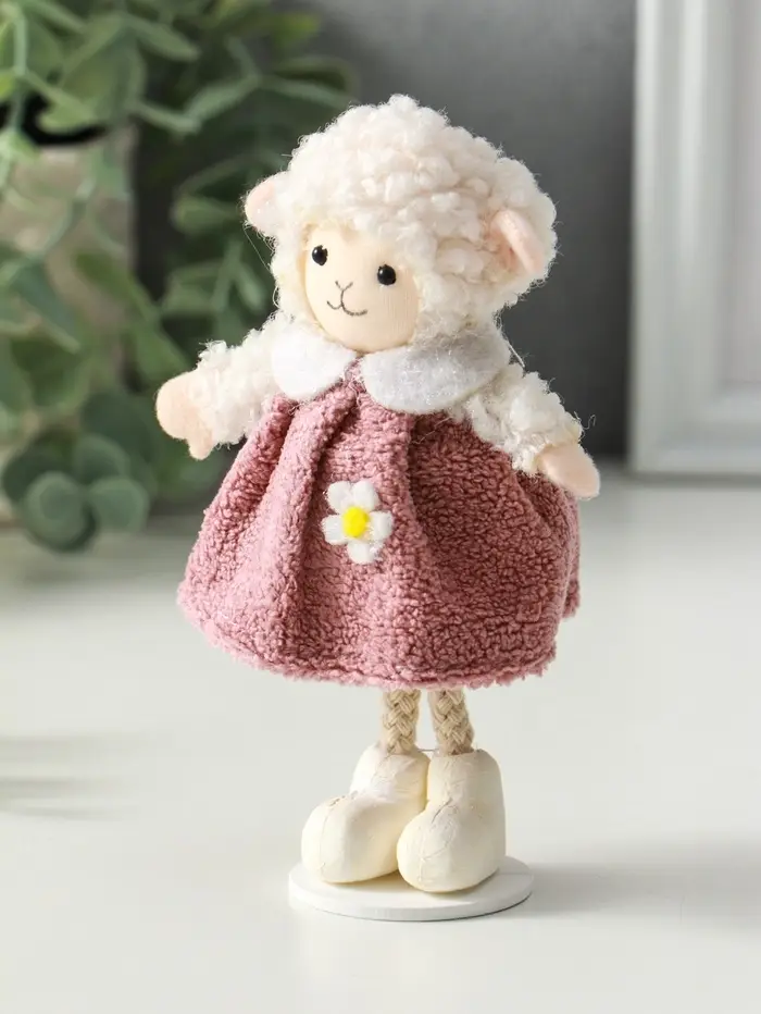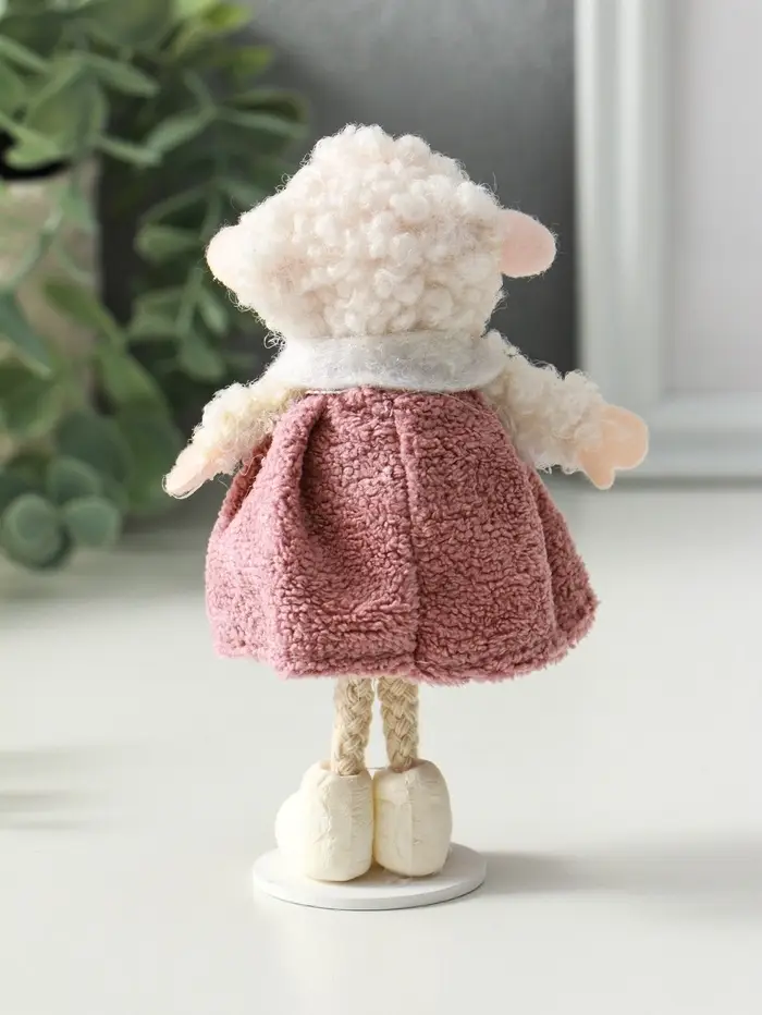 Сувенир п"Белая овечка в пыльно-розовом платье" 5х6,5х13 см