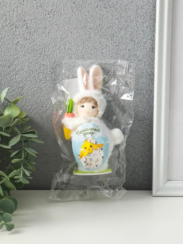 Сувенир пасхальный "Малыш в костюме кролика с морковкой" 7,5х5,5х14,5 см