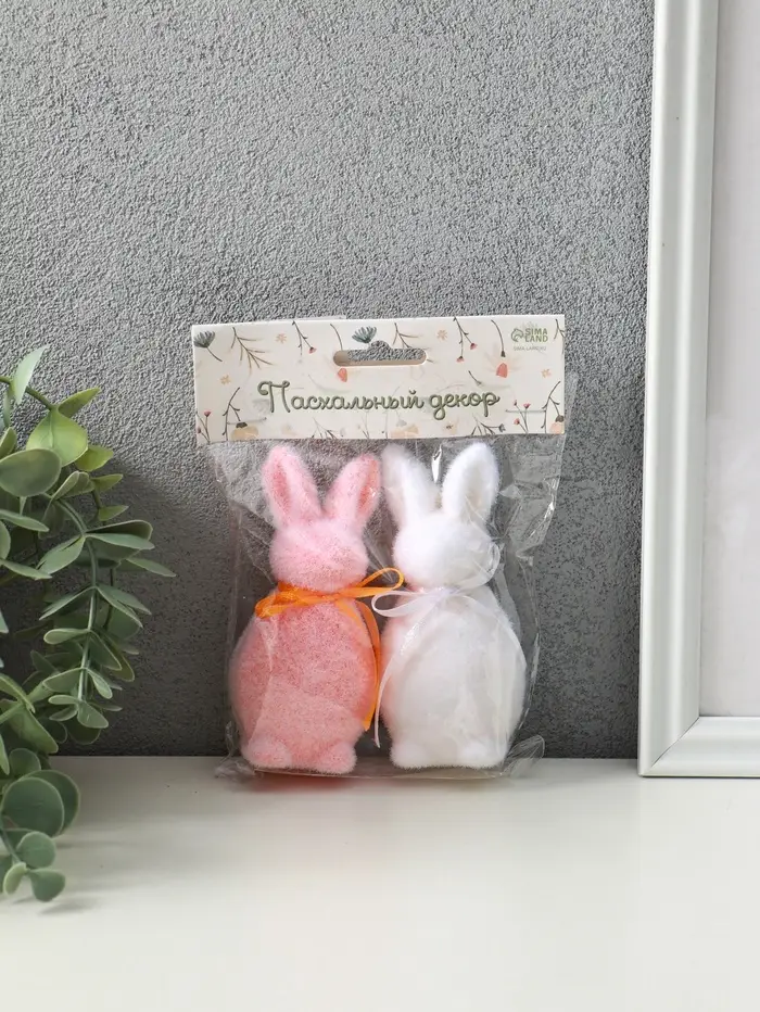Декор пасхальный "Два кролика с бантиками" набор 2 шт 4х4,5х10,5 см
