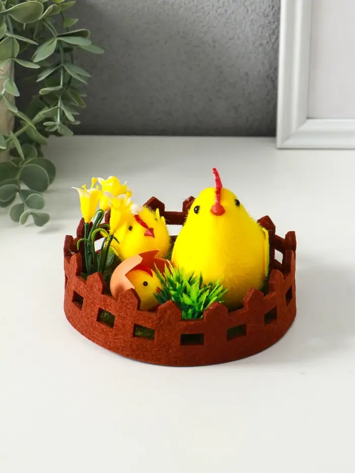 Сувенир пасхальный "Курочка с цыплятами на лужайке с забором" 12,5х12,5х8,5 см