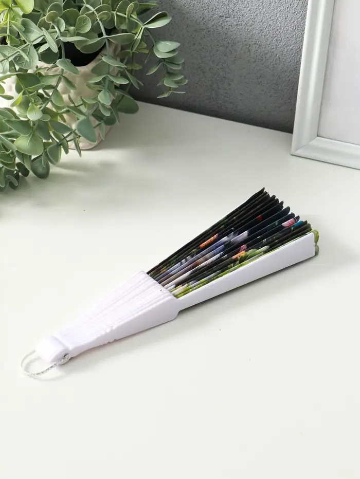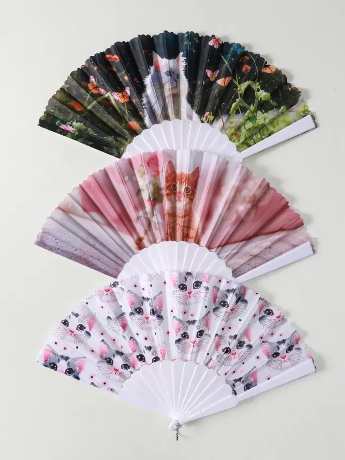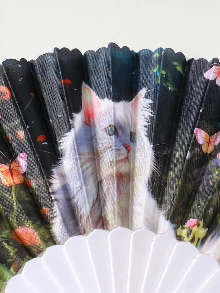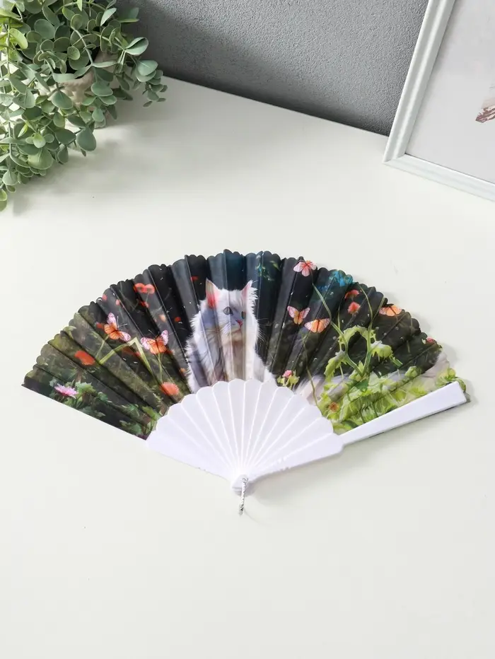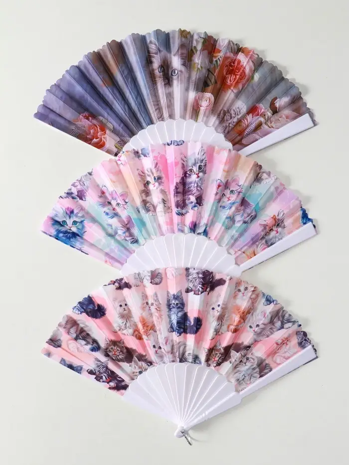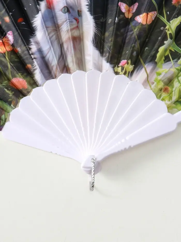 Веер пластик, текстиль "Кошечки и цветы" МИКС широкие лопасти 23 см