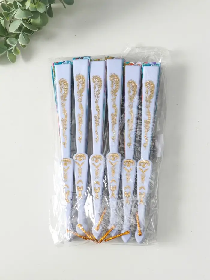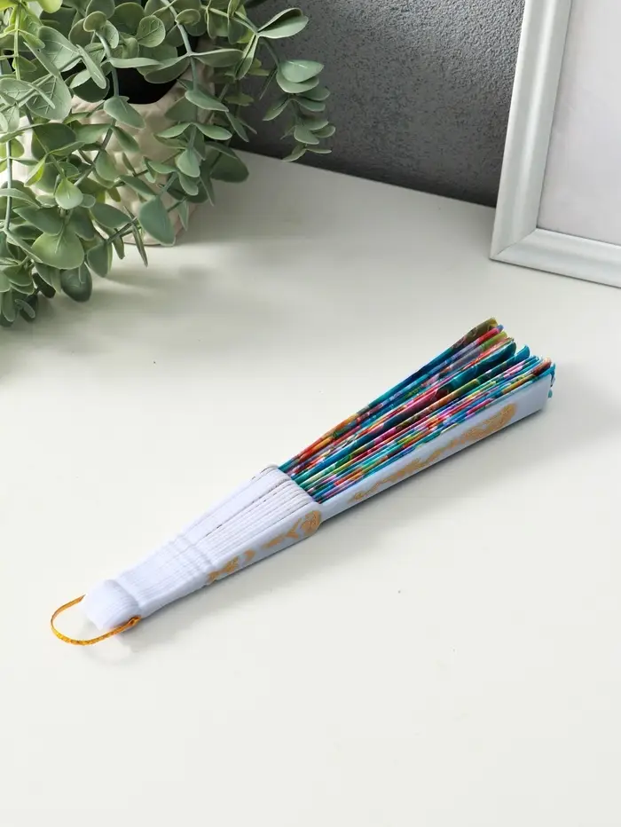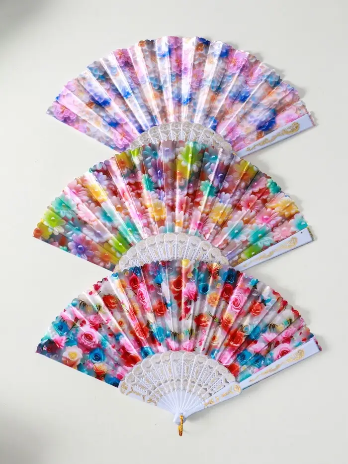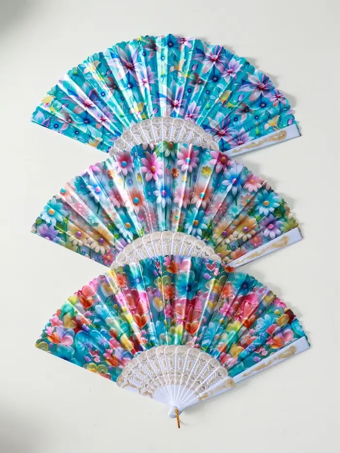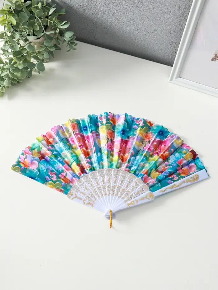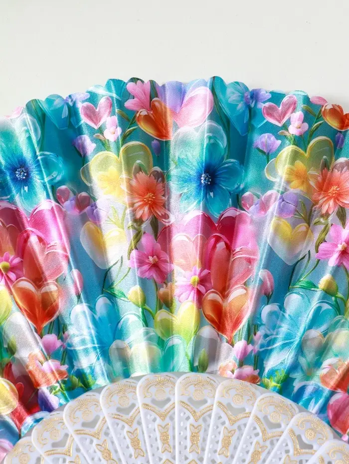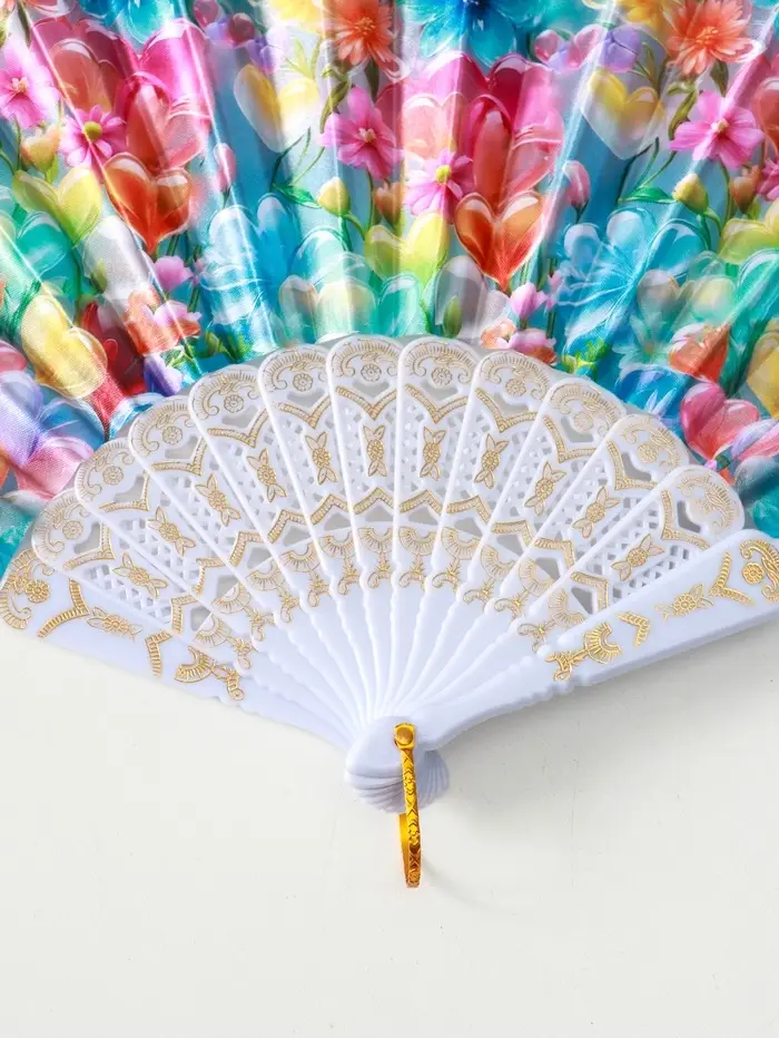 Веер пластик, текстиль "Россыпь цветов" МИКС широкие лопасти 23 см