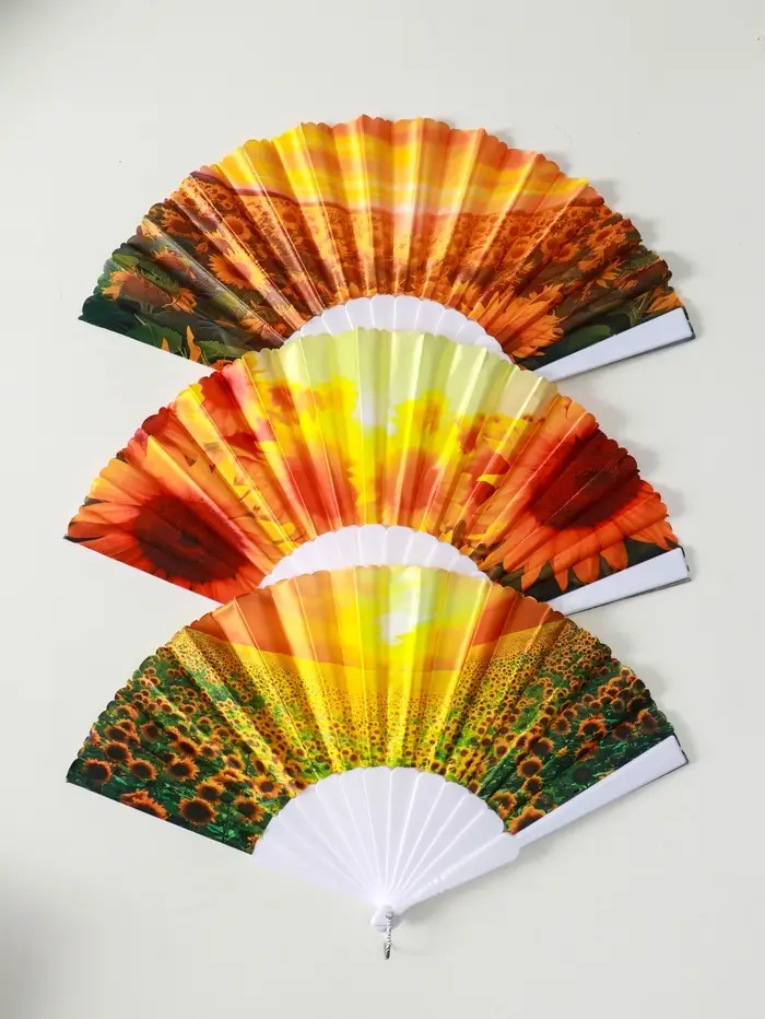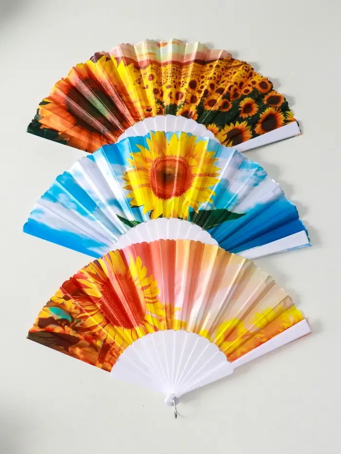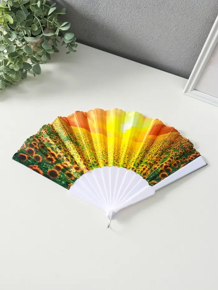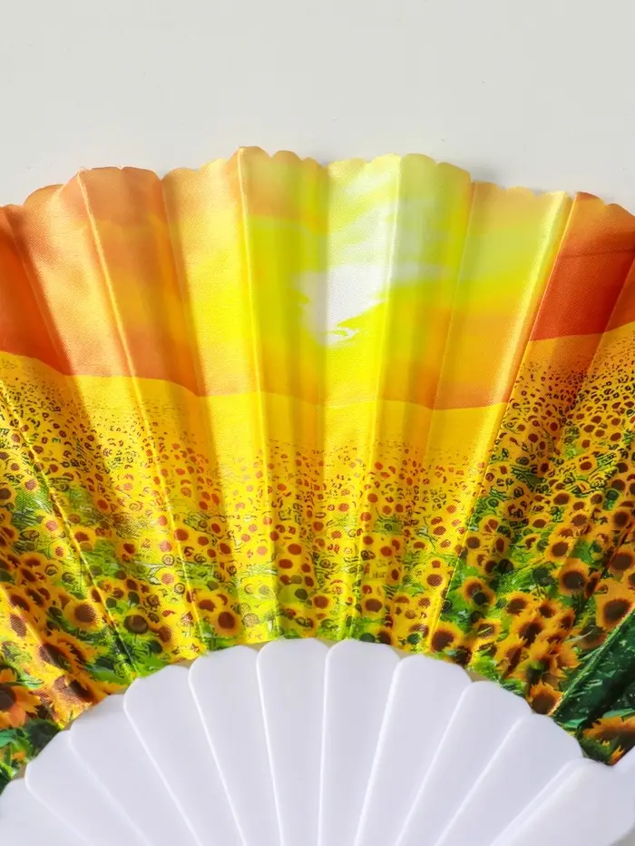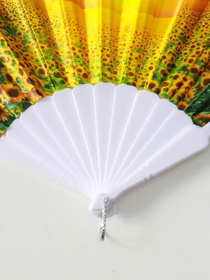 Веер пластик, текстиль "Подсолнухи" МИКС широкие лопасти 23 см