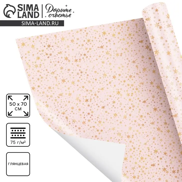 Бумага упаковочная глянцевая «Звёзды», 70 × 100 см