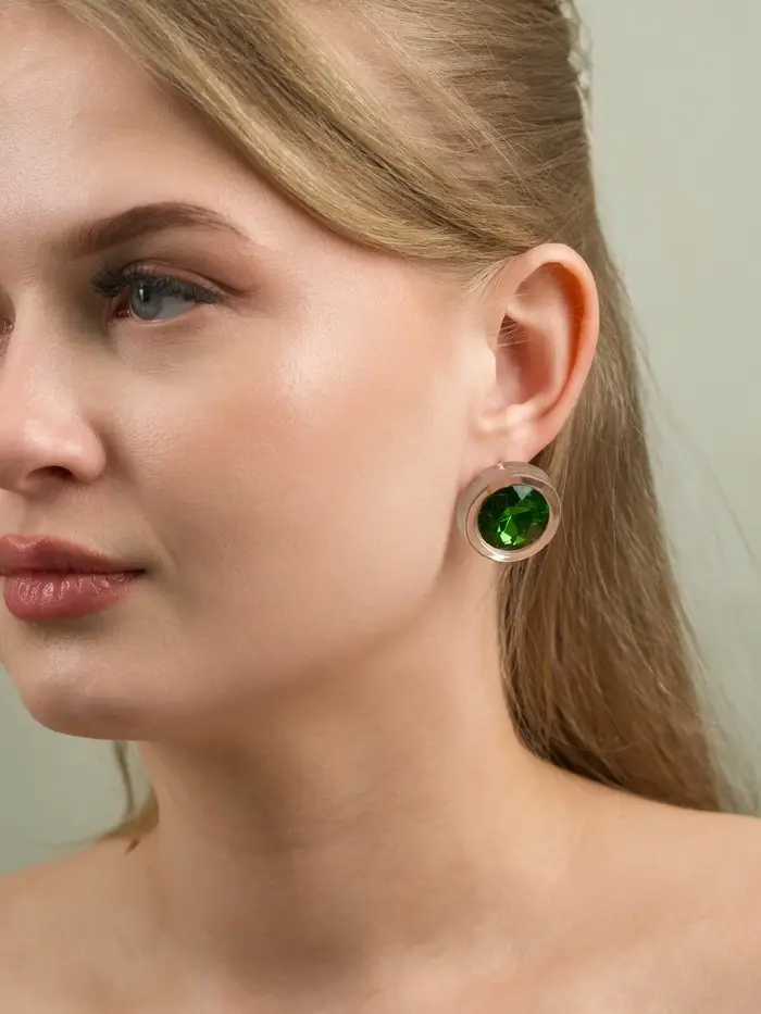 Откройте для себя волшебство прозрачно-зелёных кристаллов в нашем новом дизайне серёг. Круглые, сверкающие камни заключены в серебряную оправу, создавая свежий и молодой образ. Подходит как для повседневного стиля, так и для вечерних выходов, добавляя тонкой ноты яркости и индивидуальности вашему лицу.