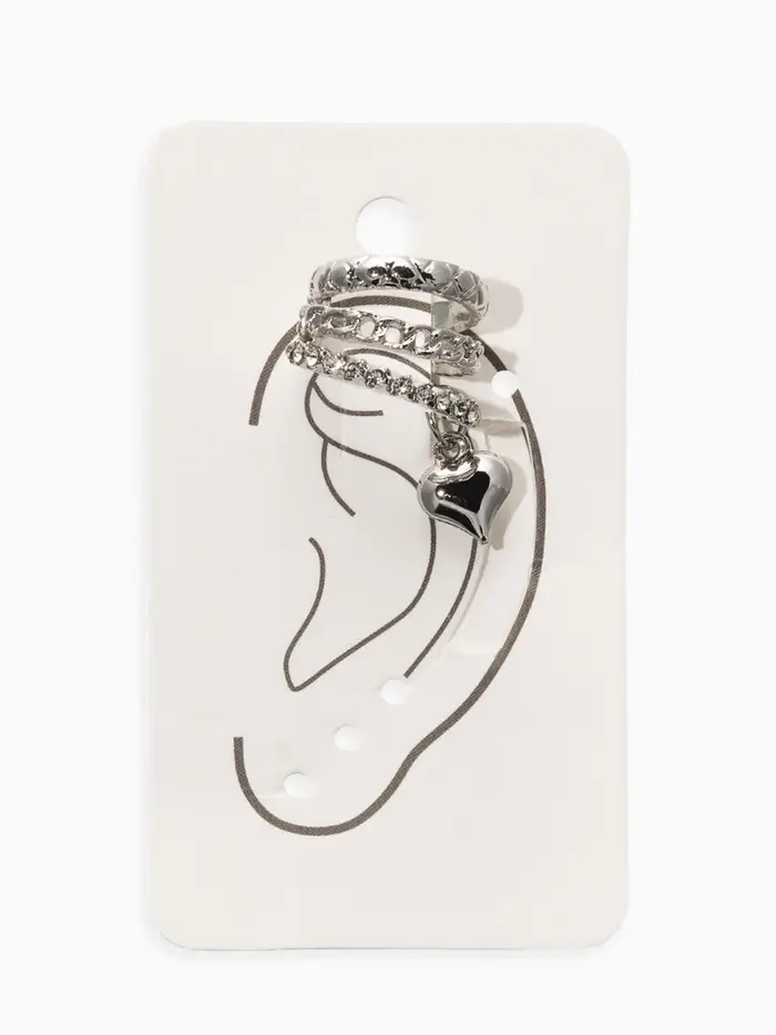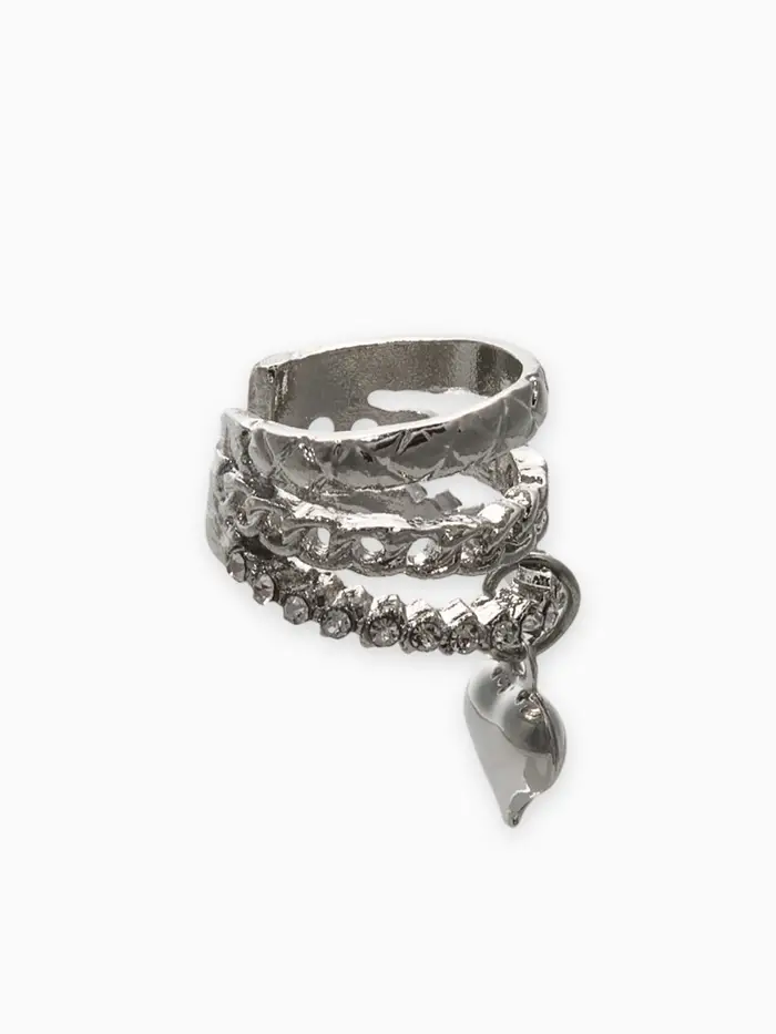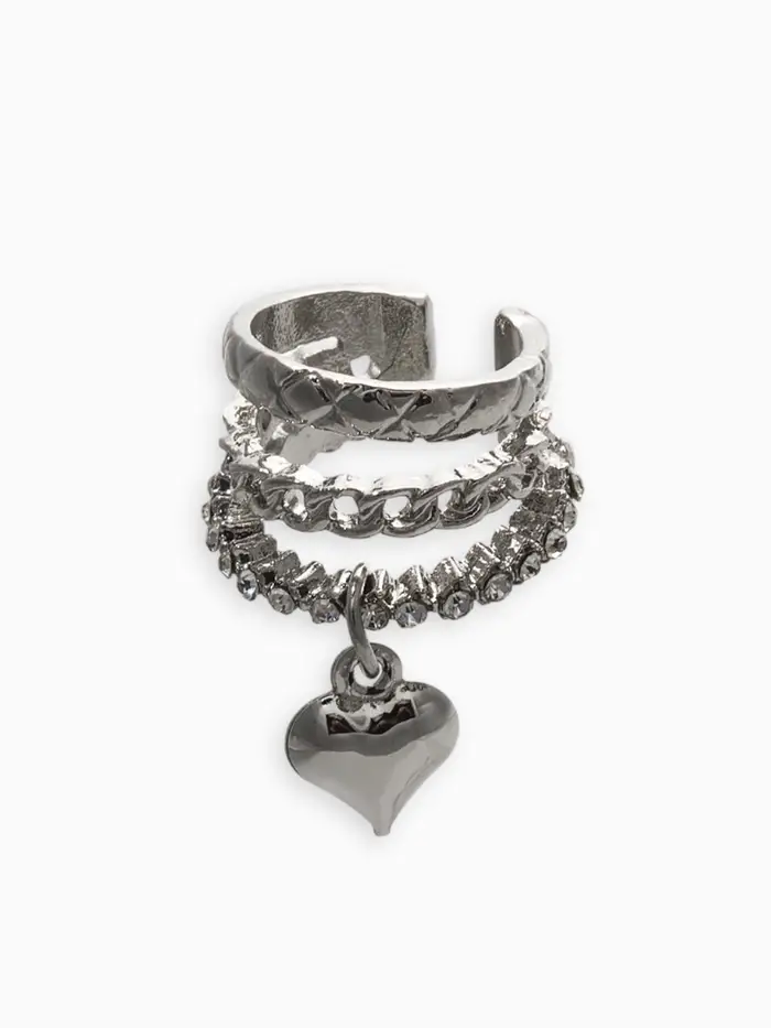 Кафф«Стиль» сердце, стеганое, белые в серебре