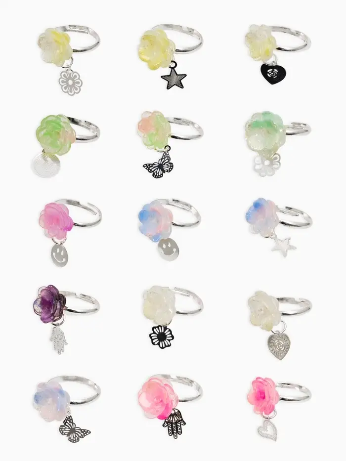 Кольцо «Выбражулька» цветок фиалка с подвеской, МИКС, безразмерное (фас. 36 шт.)