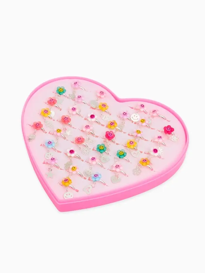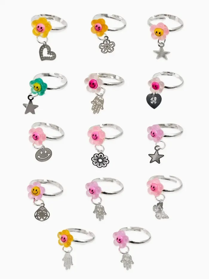 Кольцо «Выбражулька», цветок смайлик с подвеской, безразмерное, МИКС, фасовка 36 шт.