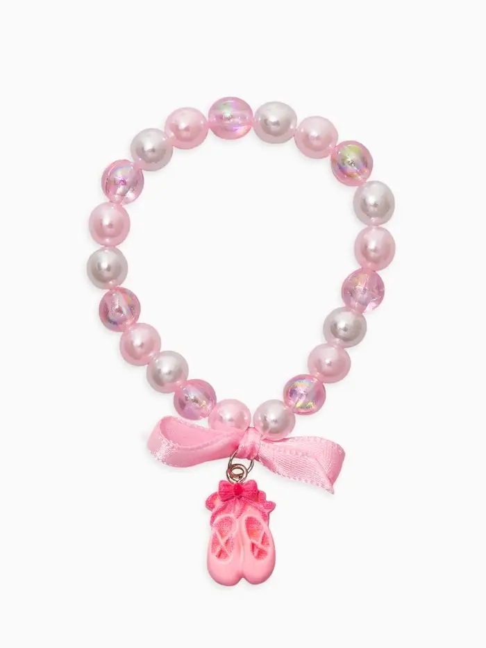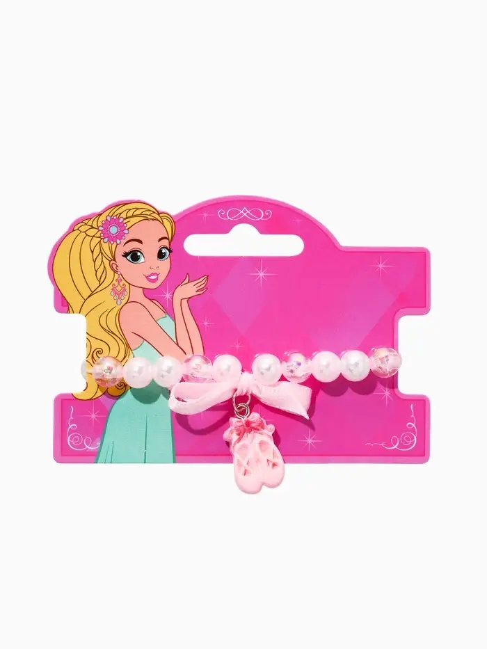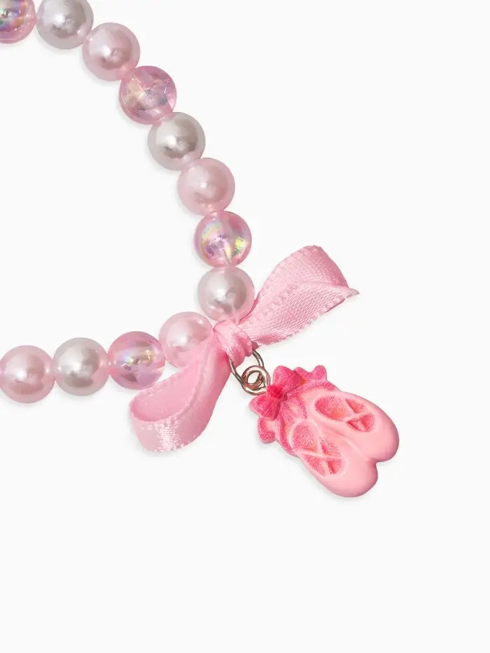 Браслет детский "Выбражулька" пуанты, бант, жемчуг, цвет бело-розовый