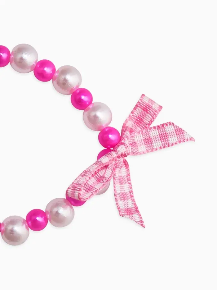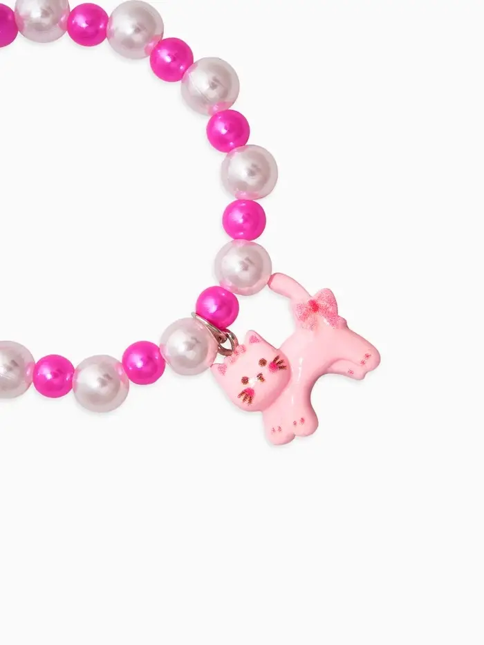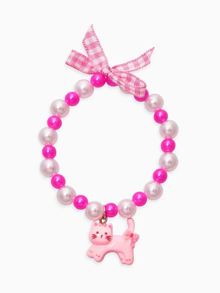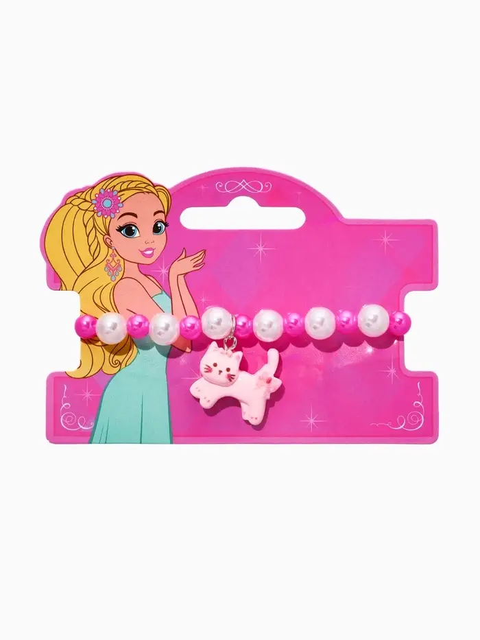 Браслет детский "Выбражулька" котик, бант, жемчуг, цвет бело-розовый