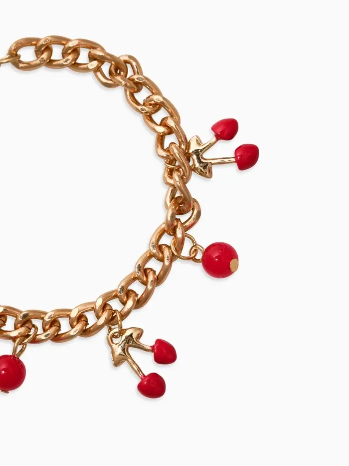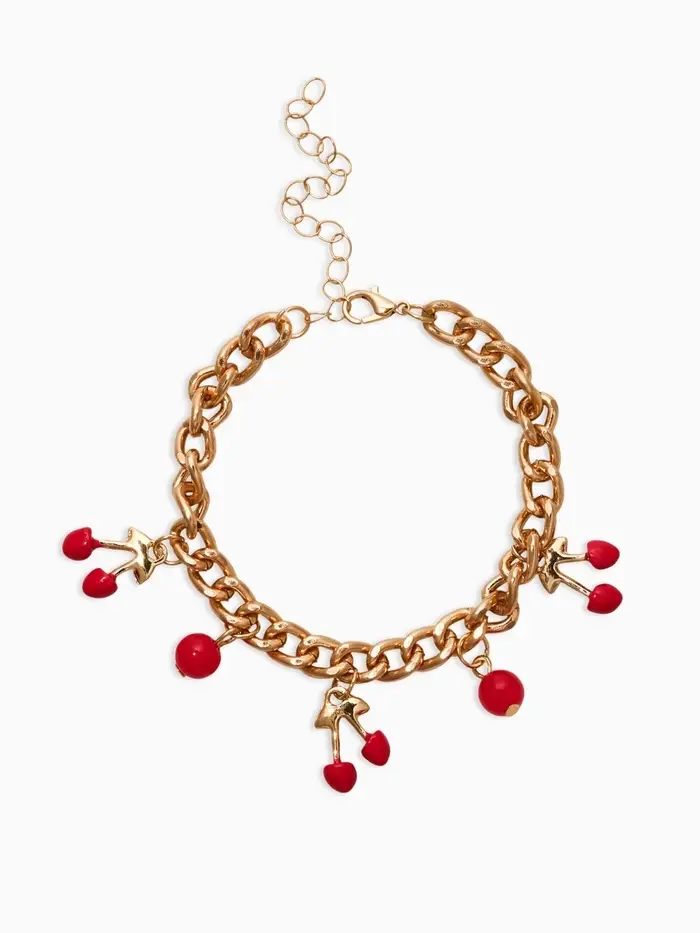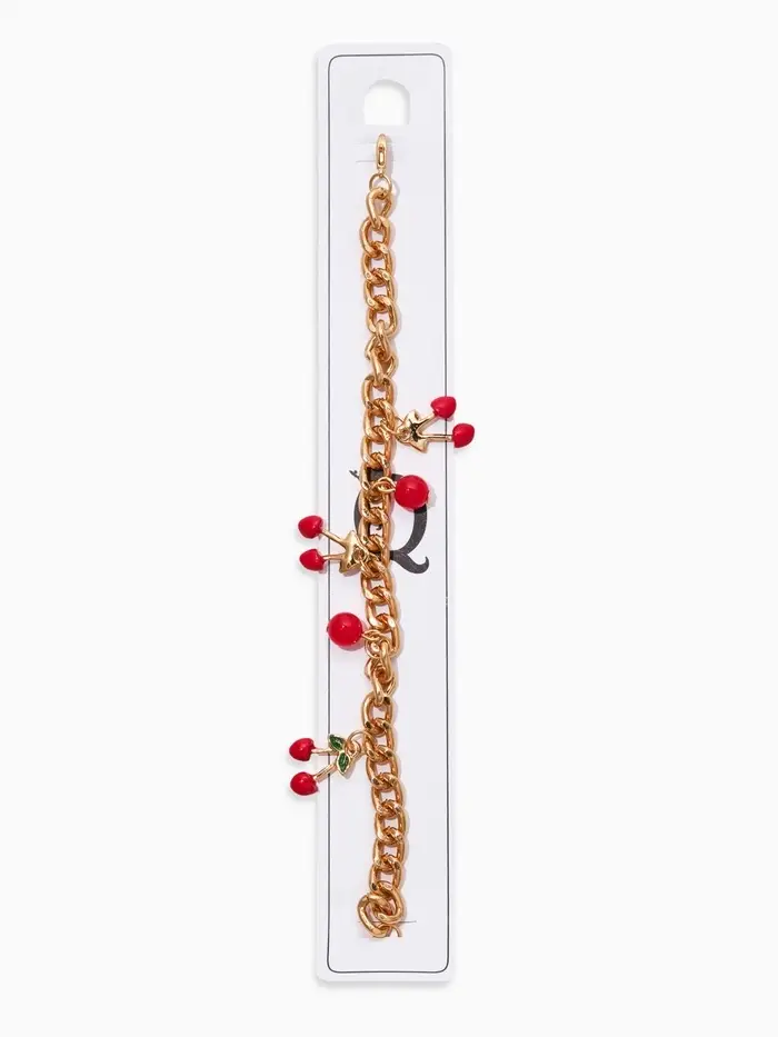 Браслет "Вишневый рай" на цепи, малые, цвет красный в золоте