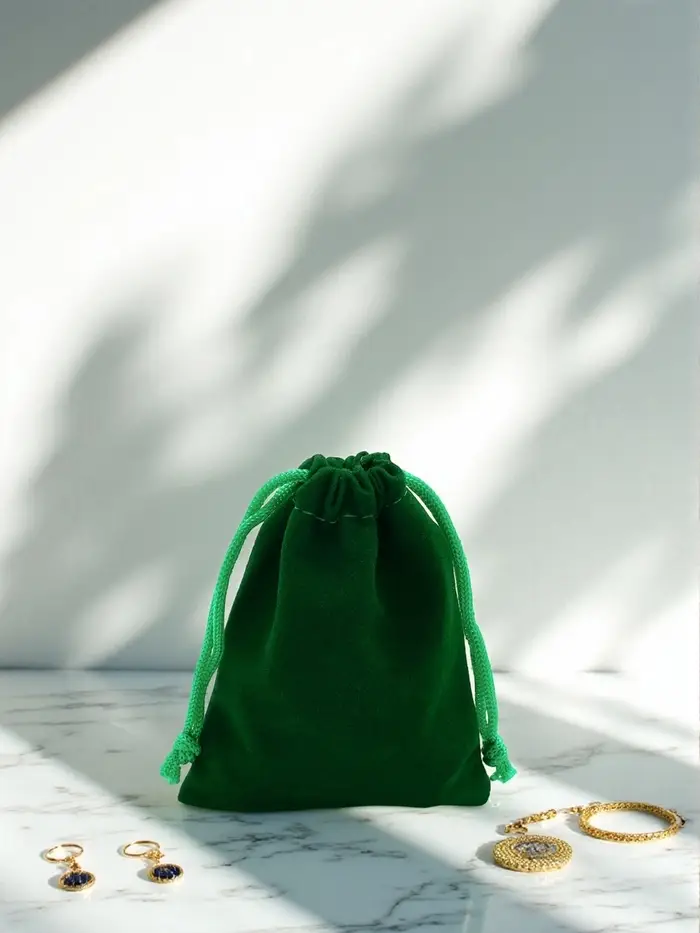 Набор мешочков бархатных 50 шт., 7*9 см (+ - 1 см), цвет зелёный (9901888)