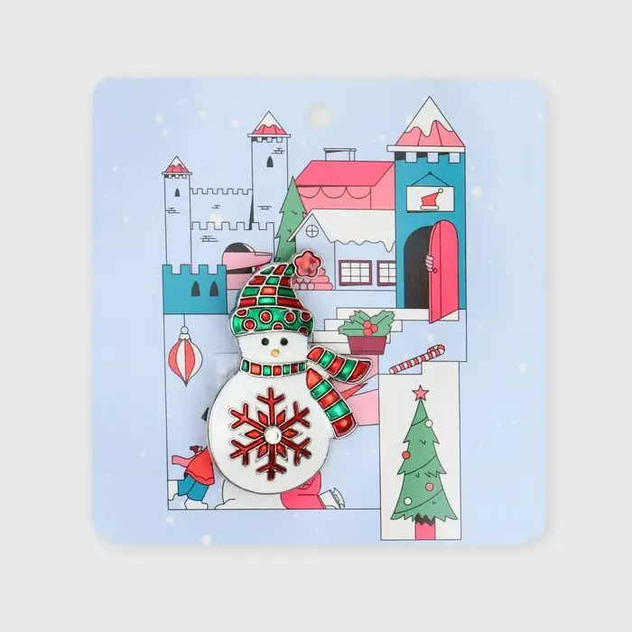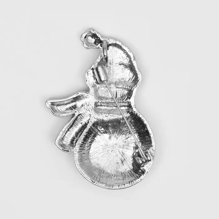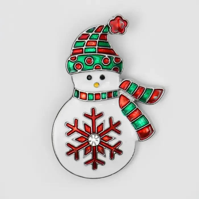 Брошь новогодняя «Снеговик» со снежинкой, цветная в серебре