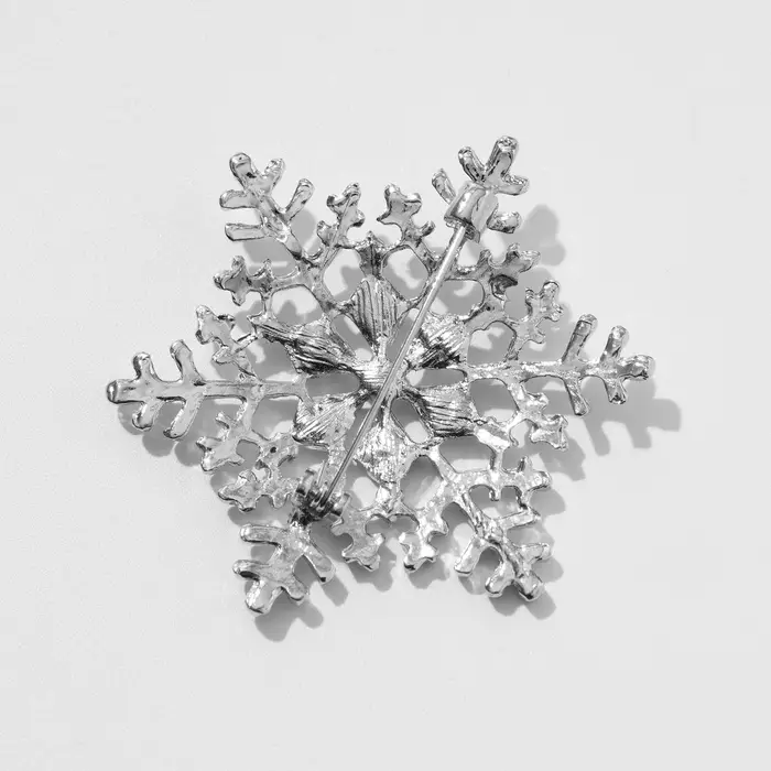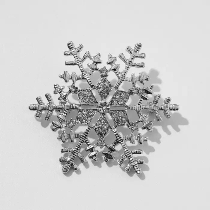 Брошь новогодняя «Снежинка» с сердцевиной, загадай желание, цвет белый в серебре