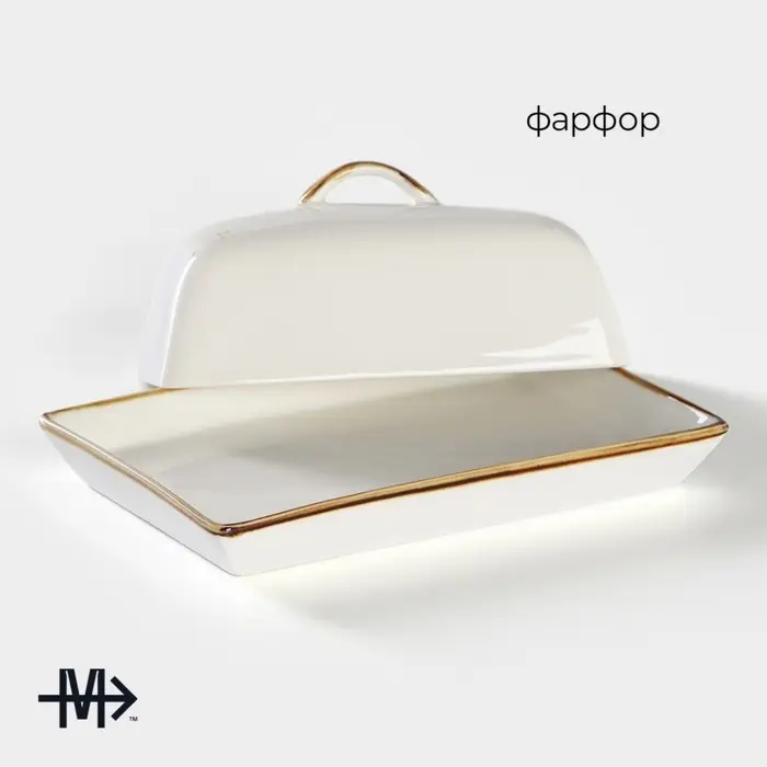 Маслёнка фарфоровая Доляна, 20×13×9 см, цвет белый