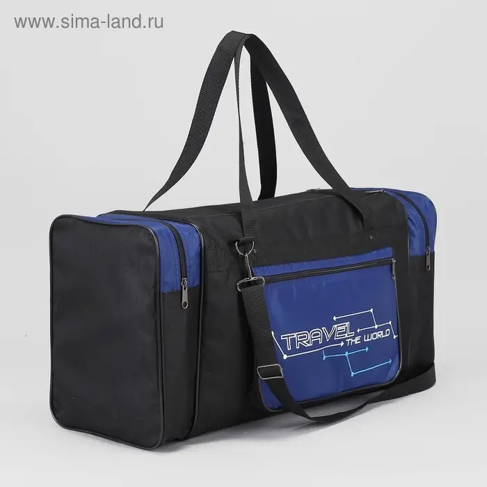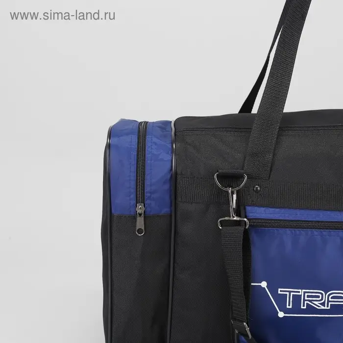 Сумка спортивная на молнии, длинный ремень, маленький размер, цвет чёрный/василёк