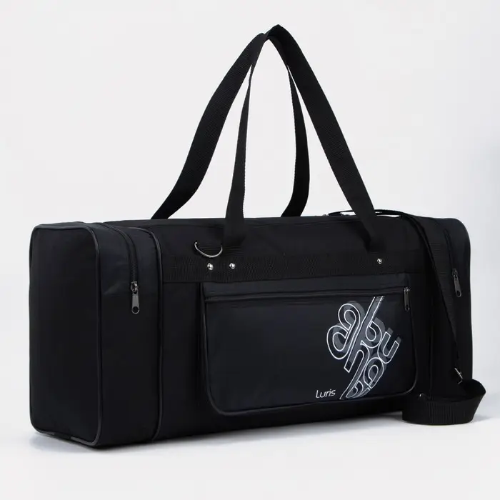 Сумка дорожная, 3 отдела на молниях, наружный карман, длинный ремень, чёрная