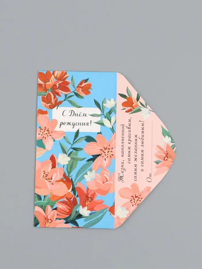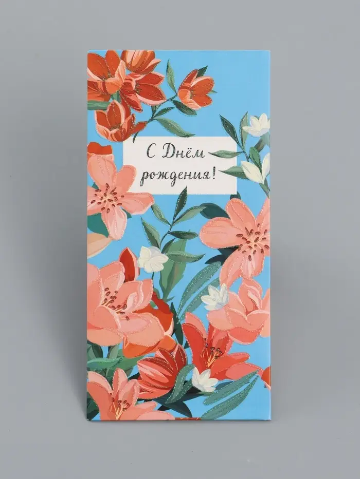Конверт для денег «С днём рождения», цветы на синем, 16,5 х 8 см
