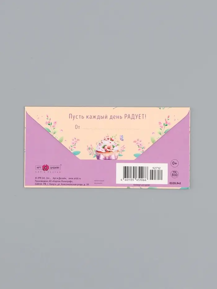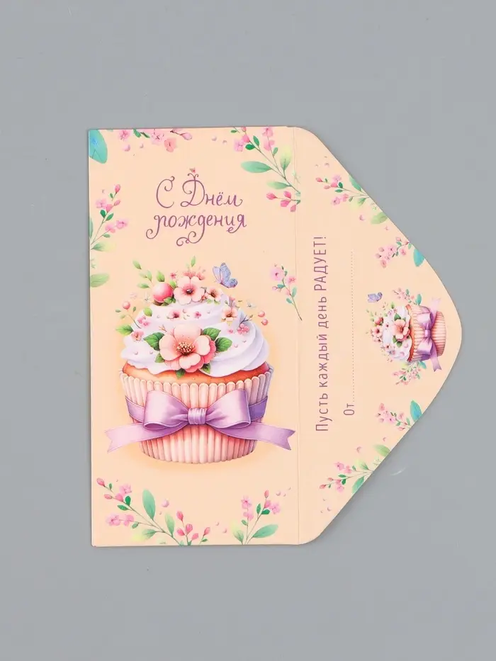 Конверт для денег «С днём рождения», капкейк, 16,5 х 8 см