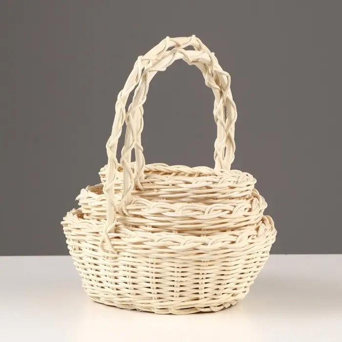 Корзина плетёная для хранения Splet, ротанг, с ручкой, бежевая, набор 3 шт.