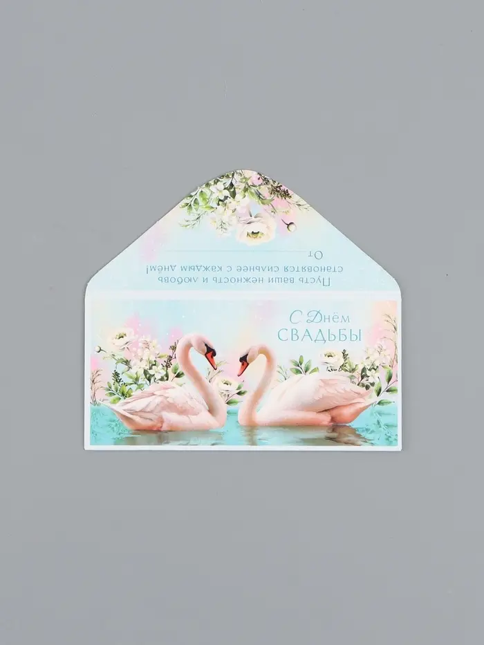 Конверт для денег «С Днем Свадьбы», лебеди, 16,5 х 8 см