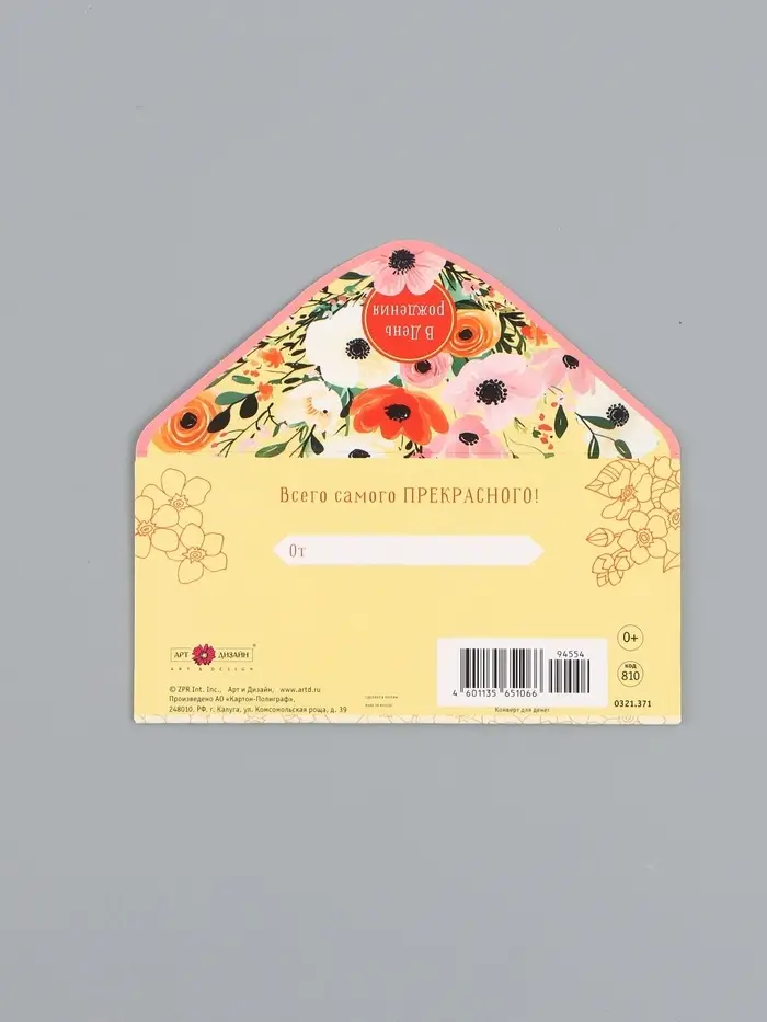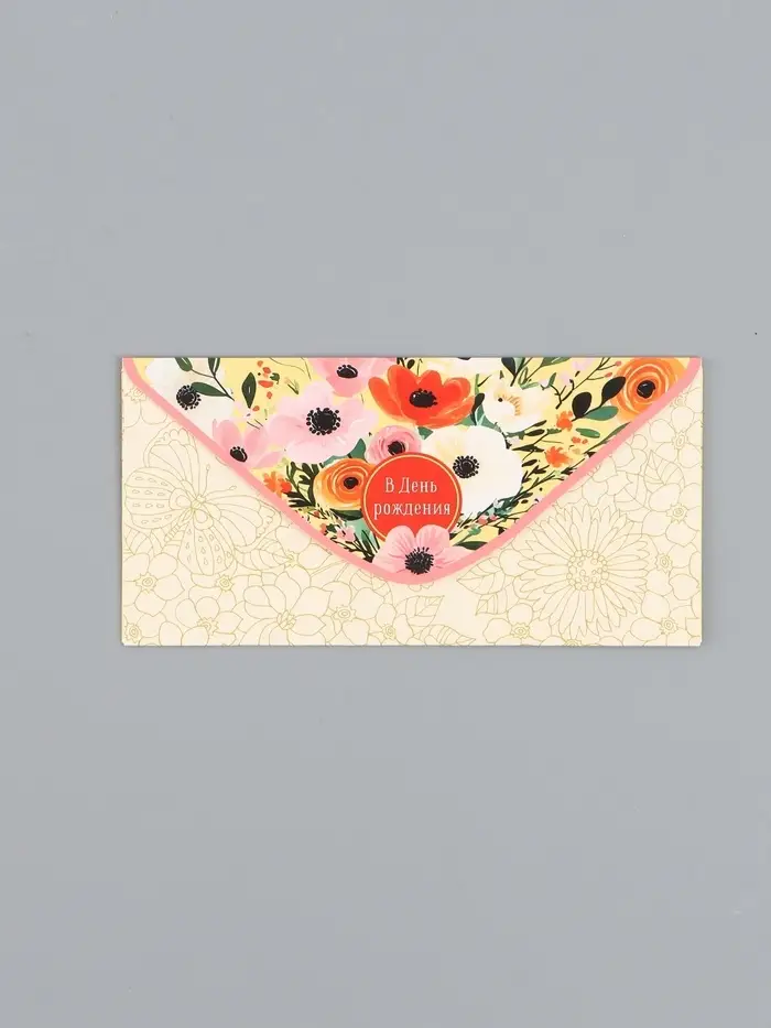 Конверт для денег «С днём рождения», цветы на жёлтом, 16,5 х 8 см