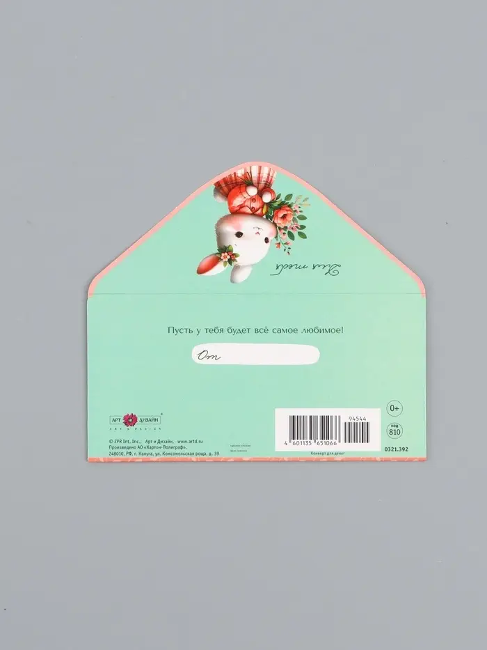 Конверт для денег «Для Тебя», зайка, 16,5 х 8 см