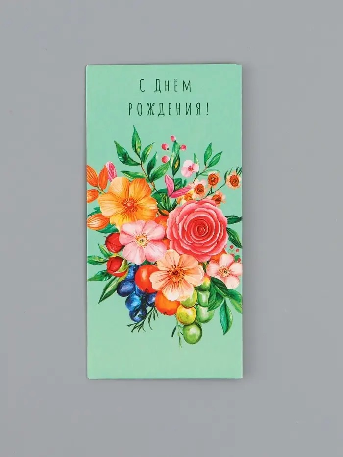 Конверт для денег «С Днем Рождения!», цветы и ягоды, 16,5 х 8 см