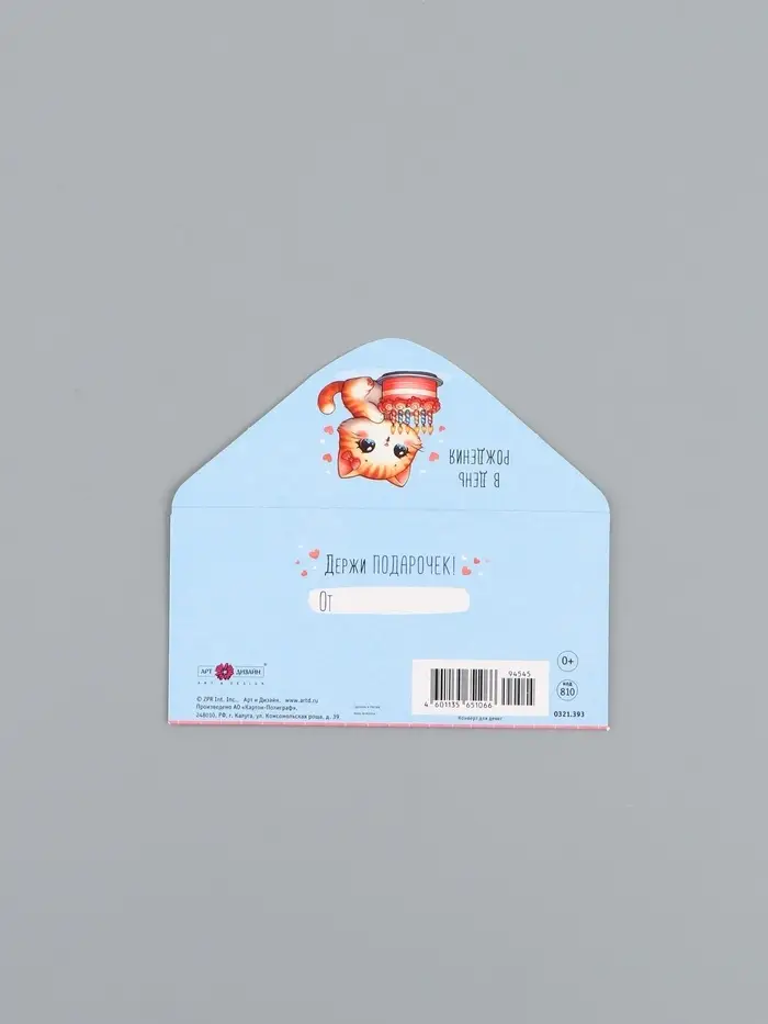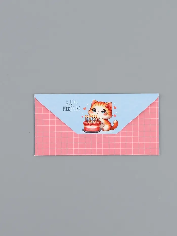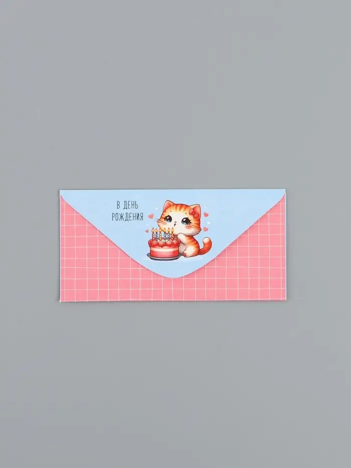 Конверт для денег «В День Рождения», кошечка, 16,5 х 8 см