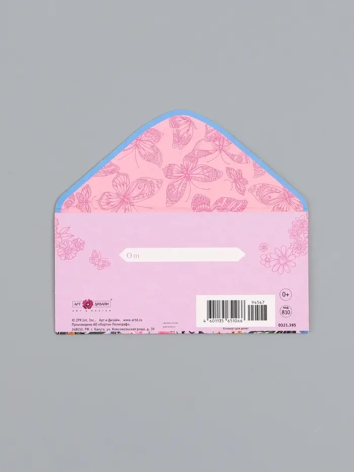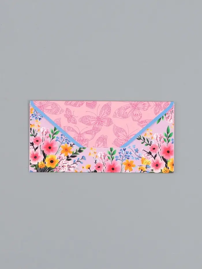 Конверт для денег «Бабочки и цветы», 16,5 х 8 см