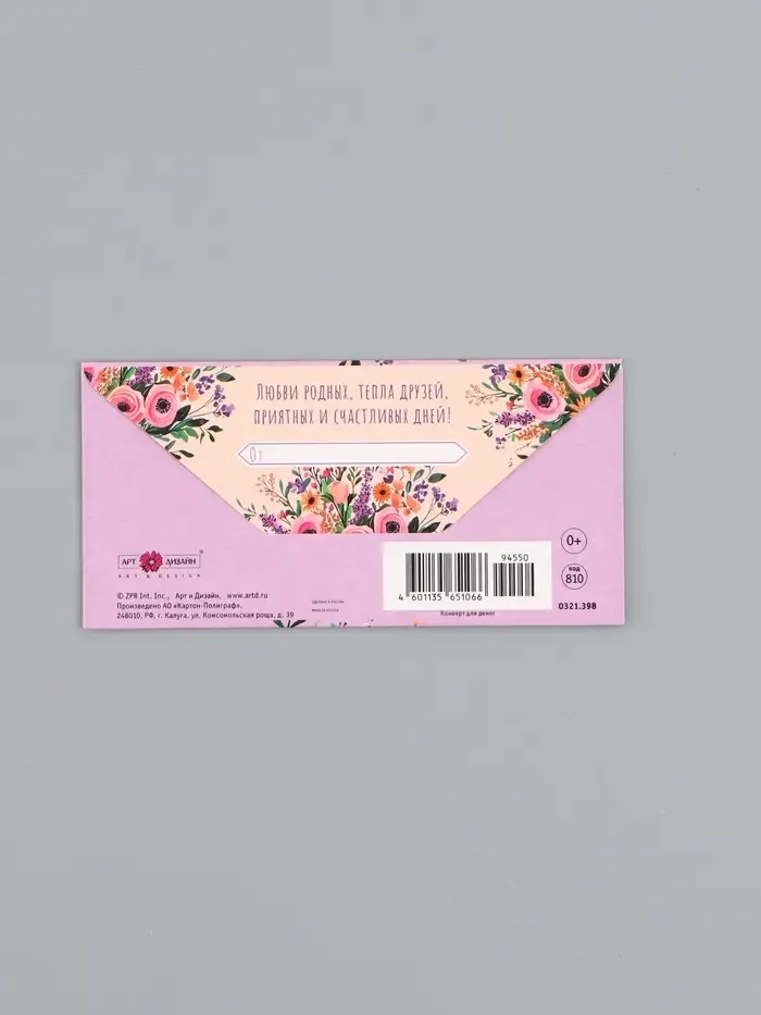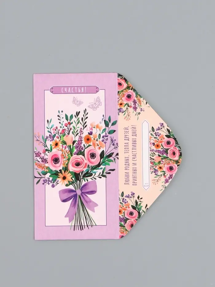 Конверт для денег «Счастья», сиреневый, 16,5 х 8 см