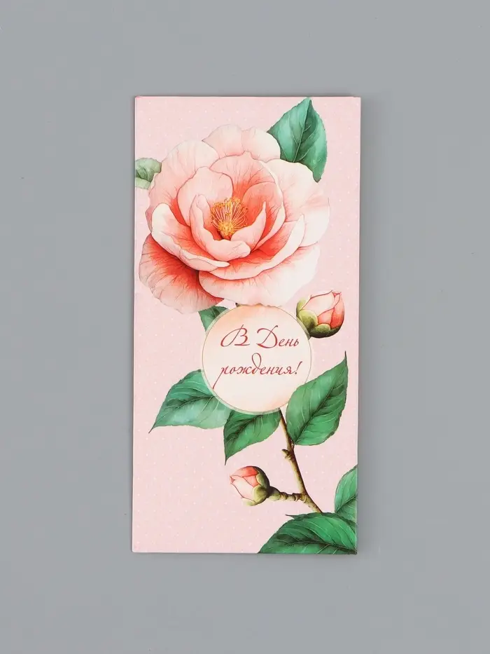 Конверт для денег «В День Рождения!», цветок, 16,5 х 8 см