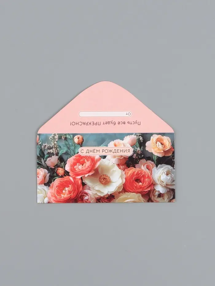 Конверт для денег «С Днем Рождения!», шикарные цветы, 16,5 х 8 см