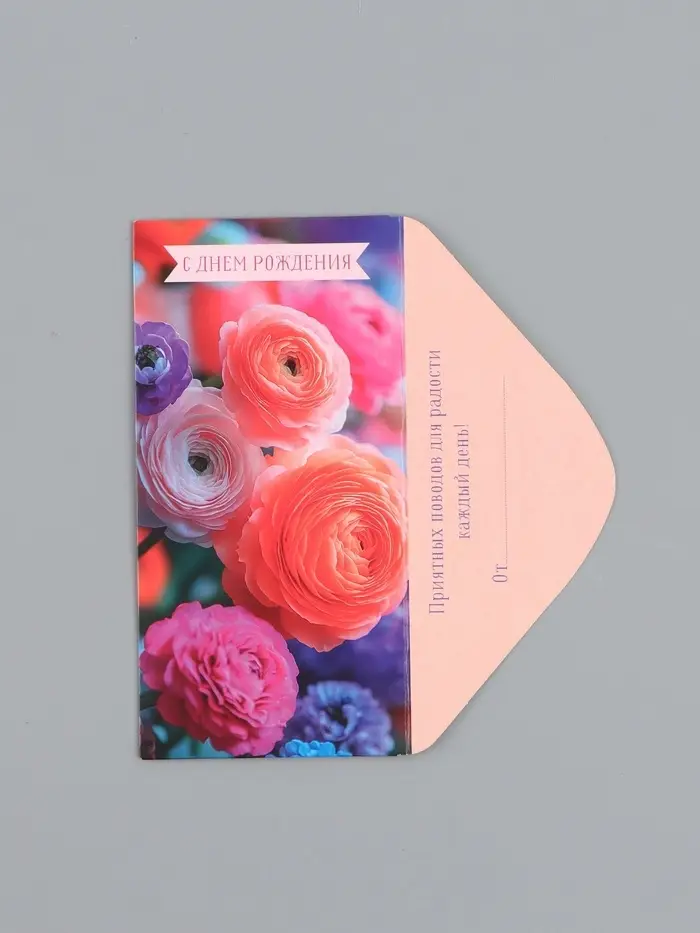 Конверт для денег «С Днем Рождения!», реалистичные цветы, 16,5 х 8 см
