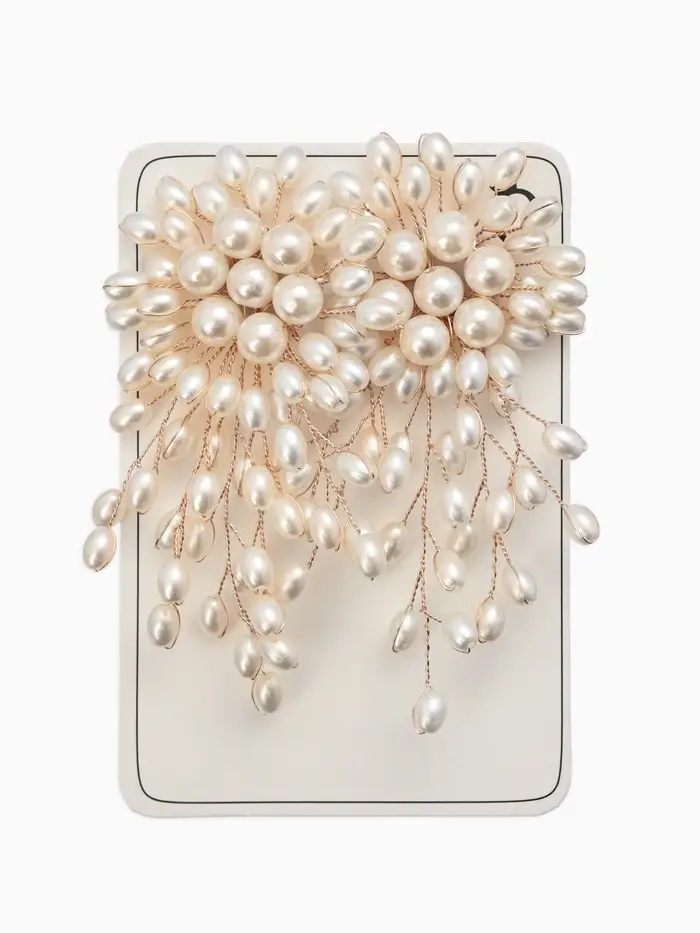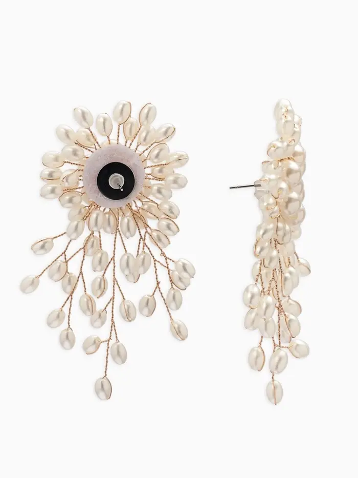 Серьги жемчуг "Россыпь в цветке", цвет белый в золоте