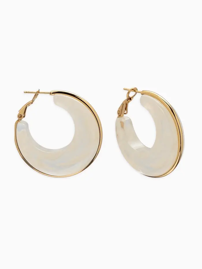 Серьги-кольца акрил "Тренд", цвет молочный в золоте