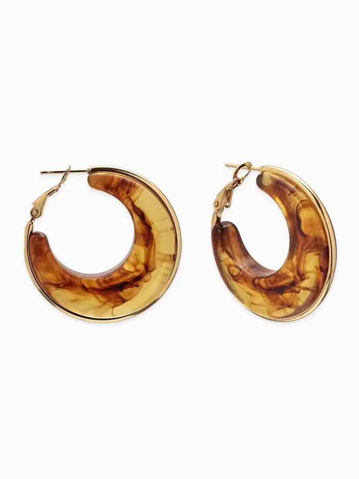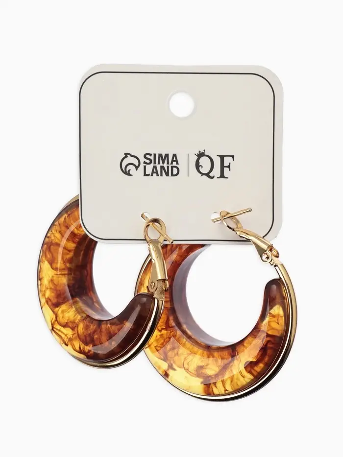 Серьги-кольца акрил "Тренд", цвет янтарный в золоте